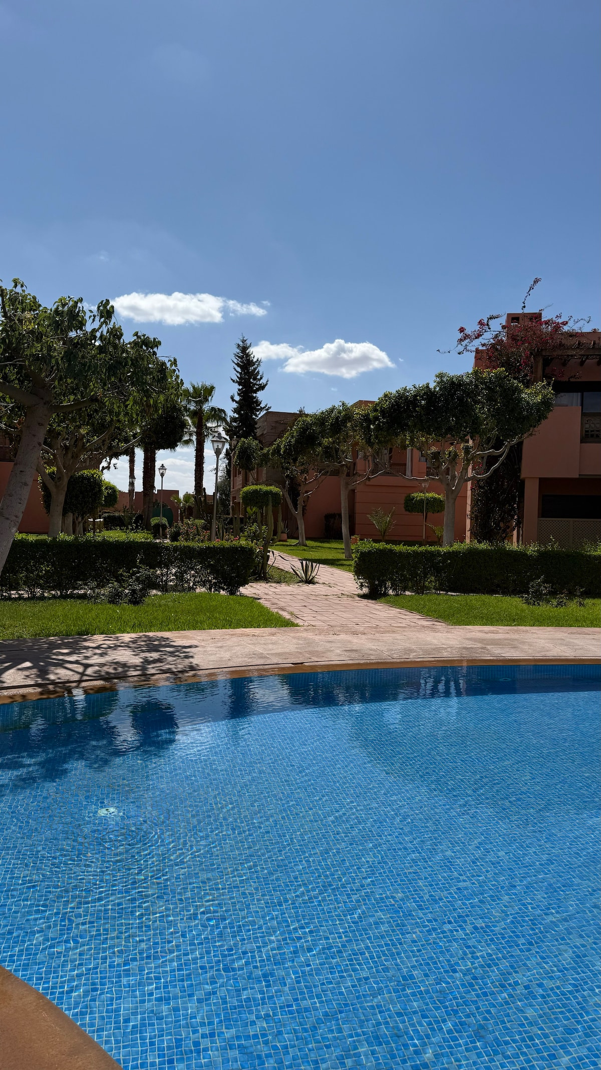 Noria qolf malikanəsində sakit, təhlükəsiz hovuzu olan (24/7 baxıcı) yaşayış yerində GÖZƏL mənzil. Qonaqlama yeri böyük qonaq otağı, əsas süita , 2 çarpayılıq uşaq otağı, təchiz olunmuş mətbəx, eləcə də gözəl terras təklif edir. Pulsuz və təhlükəsiz parkinq Yataq dəsti düz ekran televizor Netflix Wifi Beynəlxalq Televiziya Kanalları. Restoran: Frikiss,İtalyan,qəlyanaltı 1 dəq piyada. Ərzaq mağazası,çörək zavodu... Yer jemaa el-fna 10min 🚗 Hava limanı 10min 🚗Hivernage Gueliz 10min 🚗