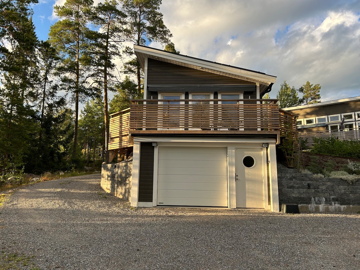 Stokholm şəhəri ilə onun gözəl arxipelaqı arasında yerləşir. Düz dəniz kənarında. Yerli mağaza və restoranlara yaxındır. 2016-cı ildə tikilmiş kottec. Rahat Kinq ölçülü ikimərtəbəli, rahat loftda iki çarpayı. Wifi. De luxe vanna otağı w duş, WC, zink və Qızdırılmış mərtəbə. Böyük düz ekranlı kabel-TV. Soyuducu, Su qazan, Qəhvə Press, Kəsmik, Eynək, fincanlar və s. Xahiş edirik qeyd edin: TAM Mətbəx yoxdur.. lakin Aşpaz Plus Mikrodalğalı/soba. Həmçinin, mövsümdə açıq havada manqal, oturma stulları və masa.