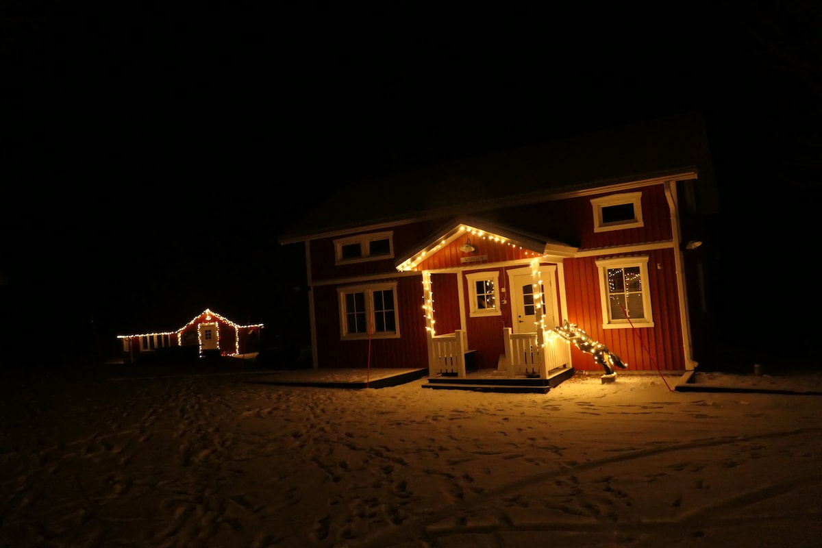 Välkommen till villan vid havet. Huset har 4 sovrum. Sovrum 5 kan ink. från 9 personer, men garanteras ej. Det är en separat lägenhet i separat byggnad. Tveka inte att fråga. Njut av fantastisk natur, hav & norrskenspromenad på isen utan störande ljus från staden, ta en varm bastu eller varför inte ett bad efter promenaden. 16 min bil till Centrum Bussförbindelser är begränsade och bil rekommenderas. Vi uppskattar om ni lämnar huset i samma skick som när ni anlände❤️