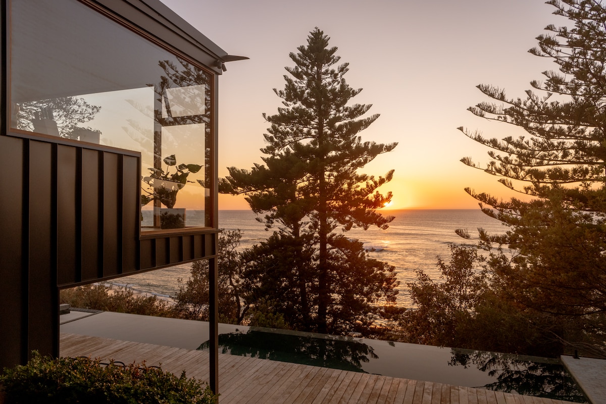 Kukaburraların şortunu oyadan şəkil, qapının ağzında günəşin isti parıltısı. Sakit okeanın mənzərələrini seyr edərək şəxsi göyərtənizə doğru addımlayın. Bu evi tikmək üçün istifadə olunan Wabi-Sabi texnikaları təbiətin rahatlığını əhatə edir. Bu ev sakit lüks üçün inşa edilib. Bununla biz Zamanın lüksü, Sağlamlıq, Sakit düşüncə, Yavaş səhərləri nəzərdə tuturuq. İsti spadan zövq alın, 12,5 m-lik mineral hovuzda məşq edin, İnfraqırmızı saunaya sahib olun, gəzinti cığırına çıxın. Birbaşa qapınızda sörf edin.