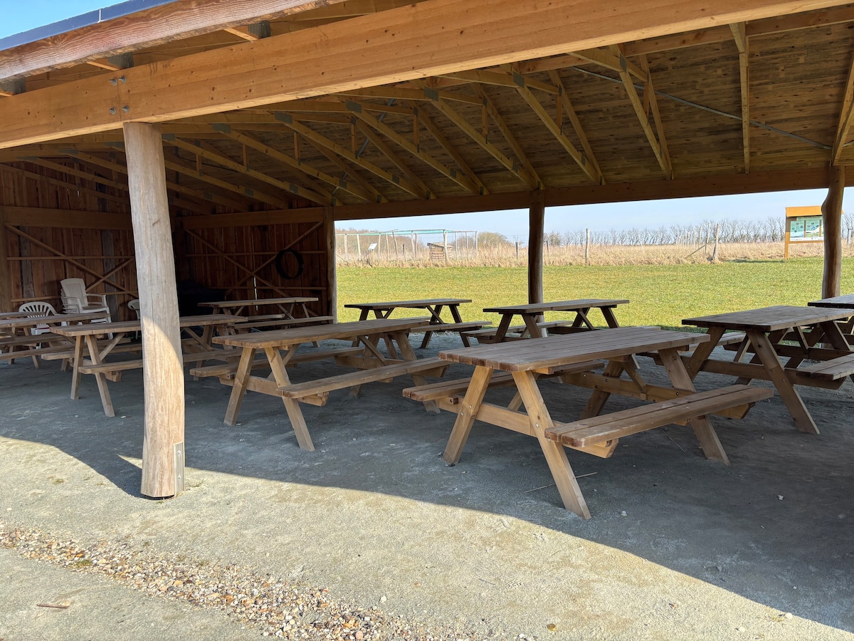 Möhtəşəm təbiətin qoynunda kəndə gedin. Hündür tavanlar və uzaqlara açılan mənzərə var. Fermada bir çox müxtəlif heyvanlar var. Ev balı və böyük mətbəx bağçası. Ətraf mühitin qayğısına qalırıq. Buna görə də öz yataq dəstlərinizi və dəsmallarınızı gətirə və ya burada icarəyə götürə bilərsiniz. Qiymətə "Özünüz hazırlayın" səhər yeməyi daxildir. (evdə hazırlanmış çörəklər, kərə yağı, pendir, cem, qəhvə/çay) Lüks səhər yeməyi/branç satın almaq olar. Açıq havada mətbəx, barbekü, od çuxuru və odun var. Açıq havada duşda ibtidai tualet və isti su var.