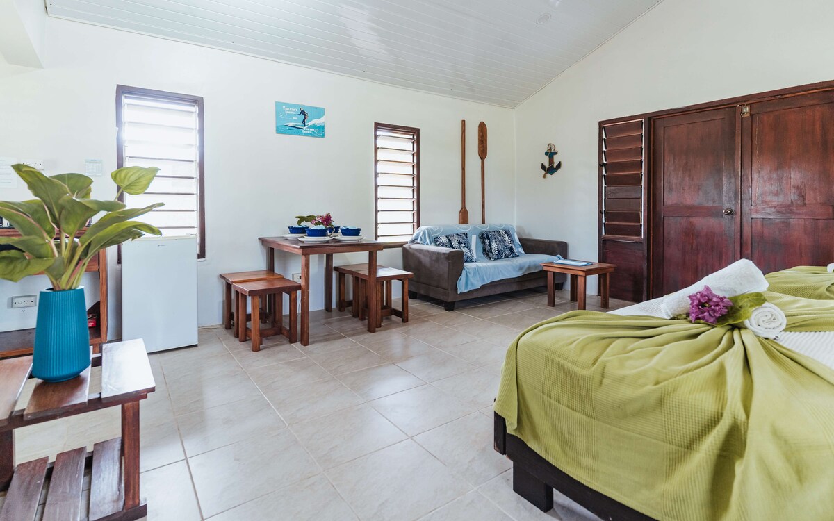 Escape to this cozy beachfront bungalow, where you can soak in stunning ocean views right from your queen-sized bed. The spacious bathroom features a beautiful timber bench, bringing a bit of nature indoors. With a fully equipped kitchen, you can whip up delicious meals while enjoying the serene seaside vibes. This is your perfect spot to disconnect and immerse yourself in the beauty of this remote paradise—relax, recharge, and embrace the simple joys of beachfront living.