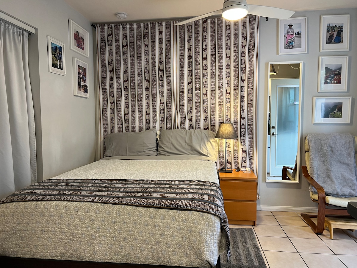 Mərkəzi şəxsi ev/kitabxananın qarşısındakı giriş və park UR XÜSUSİ: veranda,parkinq,qonaq otağı/yeməkxana iş sahəsi tam vanna/duş. Mətbəxdə qonaq otağının süitanızı ayrıca saxlamaq üçün qapısı var. Yalnız paylaşılan sahə mətbəxdə soba paninimatoru,blender,ədviyyat qəhvəxanası qələvi su və soba/camaşırxana var. Bütöv yarım ev qonaq süitası urself memoryfoam gel döşək şkafı&closet.Smart TV, netflix və s. 10 2 Hollywood 5 universalstudios.15 2 downtown35 min beach.Smoke only xaricində