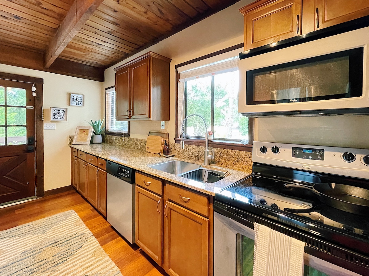 Take it easy at this unique and tranquil getaway or a romantic scape in the middle of more than 8 acres of land ,in the country ,away from the busy life, being at the same time 3 minutes from the city and the highway and only 20 minutes from the beach . Surrounded by nature, colorful peacocks, centenarian oaks, a lake, and a creek... you can have the best of both worlds, the ocean and forest.