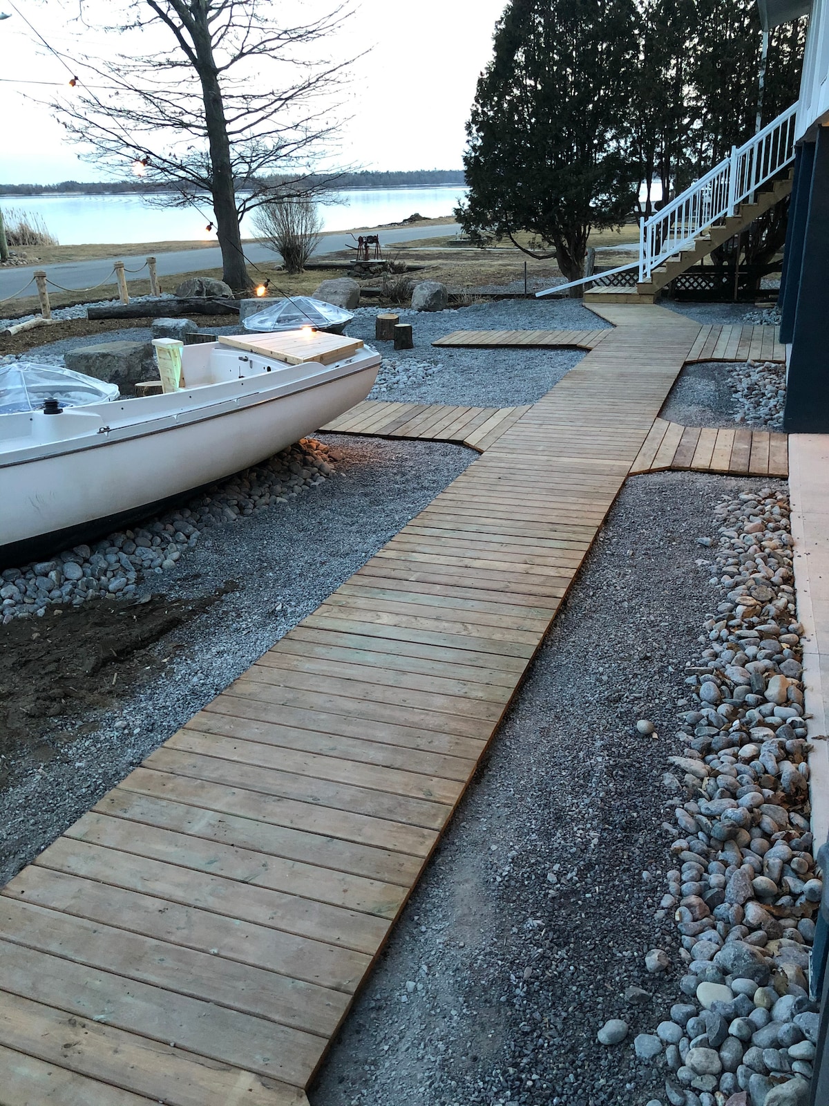 Məkanımız Trent Severn Su Yollarında və şəhər alış-verişinin yaxınlığında yerləşir. Velosiped sürmək, kyakinq, pablar və restoranlar üçün əladır. Süitamız buxarı ,televizor və cakuzi ilə təchiz edilmiş bir yataq otağı ilə təchiz olunub. Mətbəx və yemək sahəsi, televizor və buxarısı olan qonaq otağı var. Pulsuz Wi-Fi. Ayrıca istifadəniz üçün camaşırxana ləvazimatları, cakuzi ,sauna və propan yanğını çuxuru və barbekü olan verandanın çölündə də var. Bir neçə nəfər üçün quraşdırırıq və imkanlarımız yalnız qonaqlarımız üçündür .