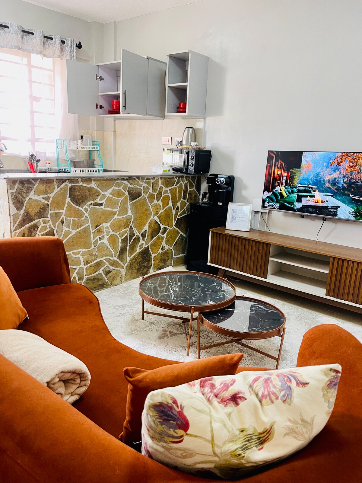 NAIVASHA VACATION GETAWAY ✨ Escape to comfort and style in the heart of Naivasha! My cozy 1-bedroom apartment is your perfect retreat – where modern vibes meet peaceful nights. Sink into a super comfy bed. Stay connected with high-speed Wi-Fi. Stream, chill, or work with a Smart TV and a dedicated workspace. Walk to nearby malls, cafés, and the town center in minutes. Perfect for business trips, couples, solo travelers, or digital nomads. Stylish. Quiet. Central. You’ll feel right at home.