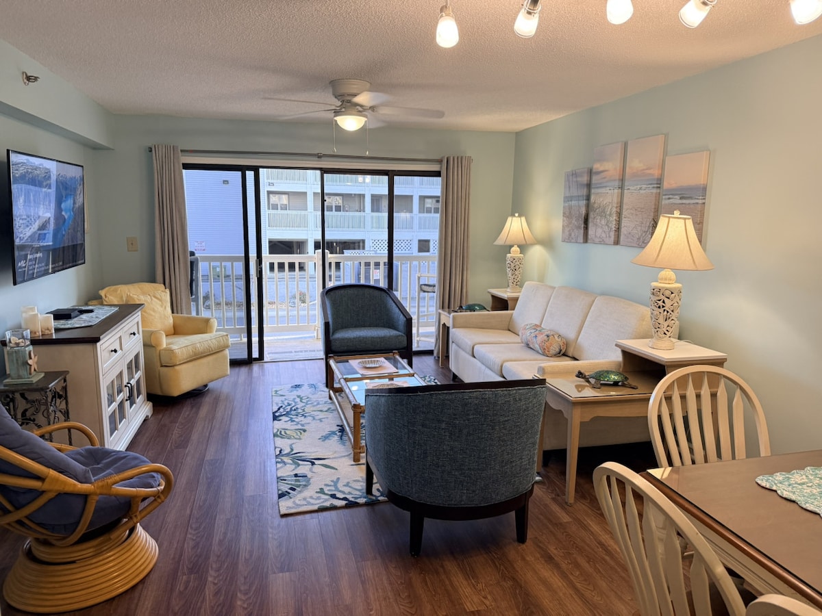 Şimali Myrtle Beach-də "The Ocean's Cove" a Myrtle Stays Property-a xoş gəlmisiniz. Füsunkar Son Vahid Panoramik Görünüşlər İmkanlara daxildir: - Əsas yataq otağında 2 çarpayı 150-179 sm - İkinəfərlik vanna otağı, tualet və Duş/Tub. - Ehtiyat Mətbəx: * Tam Soyuducu * Yandırıcıları dayandırın * Damla qəhvə maşını * Çanaq * Mikrodalğalı soba - Qonaq otağında 1 Kraliça Divan-çarpayı - 3 Açıq Havada Hovuz (Mövsümi İsidilən) - Lazy River 350ft - 2 Açıq havada cakuzi - Qapalı hovuz və cakuzi - Mərkəzdə yerləşir