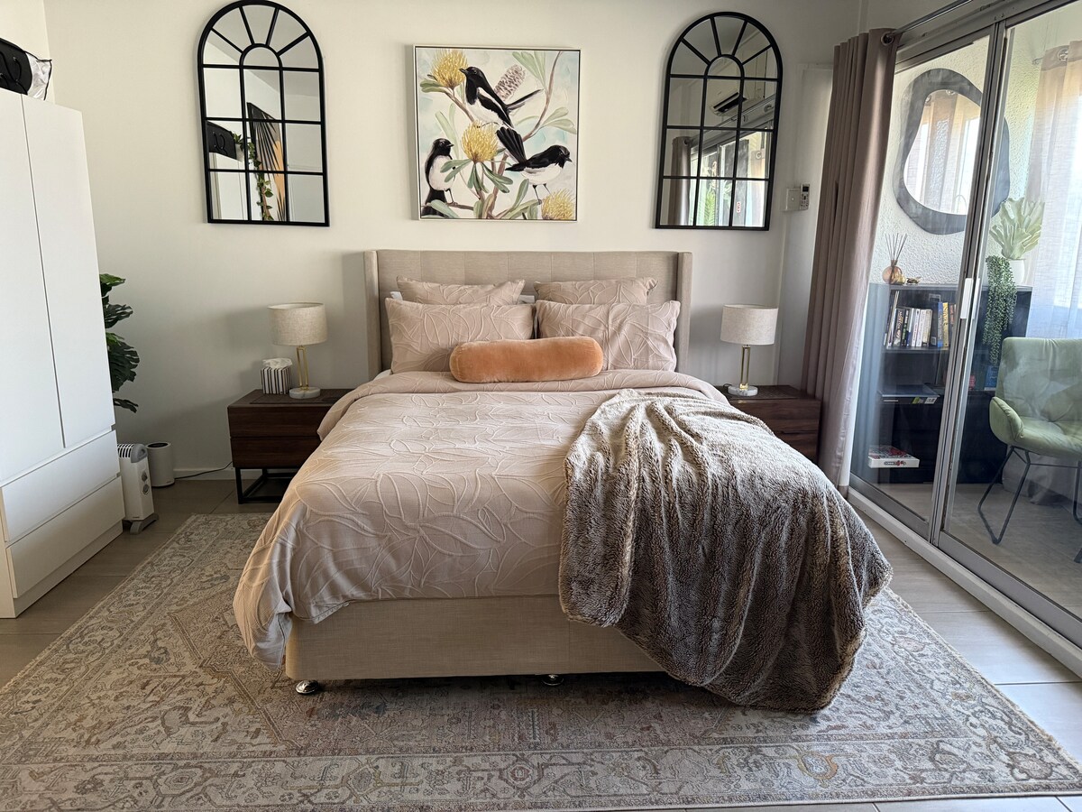 Öz ayrıca və təhlükəsiz girişi olan eybəcər fərdi studiya. Sakit yerdə yerləşir; kafelərə, restoranlara, mağazalara, supermarketlərə, xəstəxanalara, ictimai nəqliyyata, Pert şəhərinə və gözəl çimərliklərə yaxındır. Tam təchiz olunmuş mətbəx və hamam/camaşırxanası var, bütün müasir şəraiti var. Qəhvə və çay təmin edilir. Bir kral çarpayısı və ya iki böyük sinql mövcuddur. Öz xüsusi açıq hava sahəsi və barbekü ilə küçə parkinqindən kənar təhlükəsizdir.