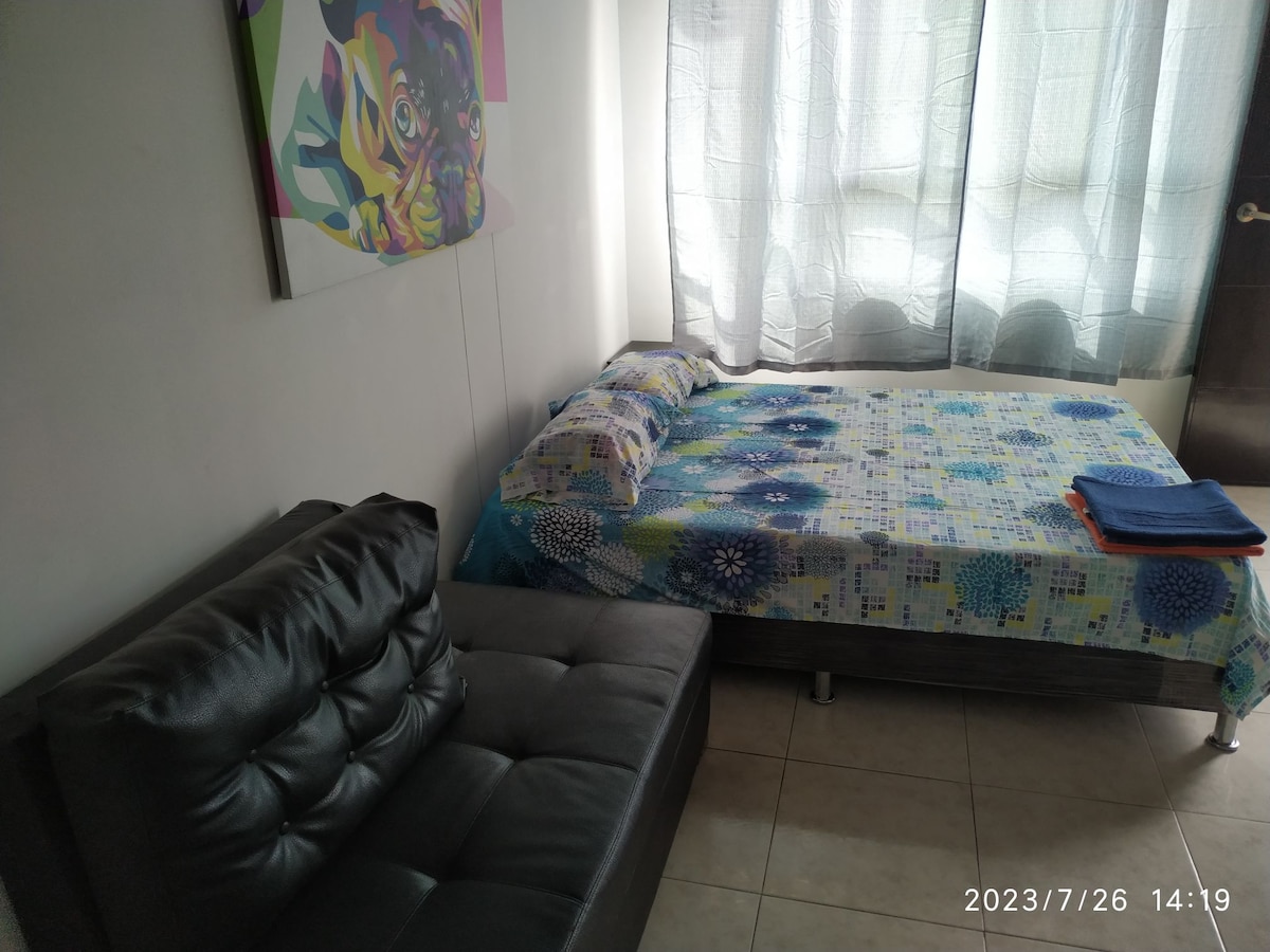 Apartamento completo central, parque para niños 🛝. Cerca a los supermercados de cadena EXITO 🛒, MAKRO 🛒Y CENTRO COMERCIAL VENTURA PLAZA. A TAN SOLO 15 min DEL CENTRO. Propiedad exclusiva, asesoramiento personal, zonas verdes, central. Tu estadía es nuestra prioridad, te acompañamos en este viaje de principio a fin. Ofrecemos la estadía que estas buscando; Confort, luminosidad y belleza.