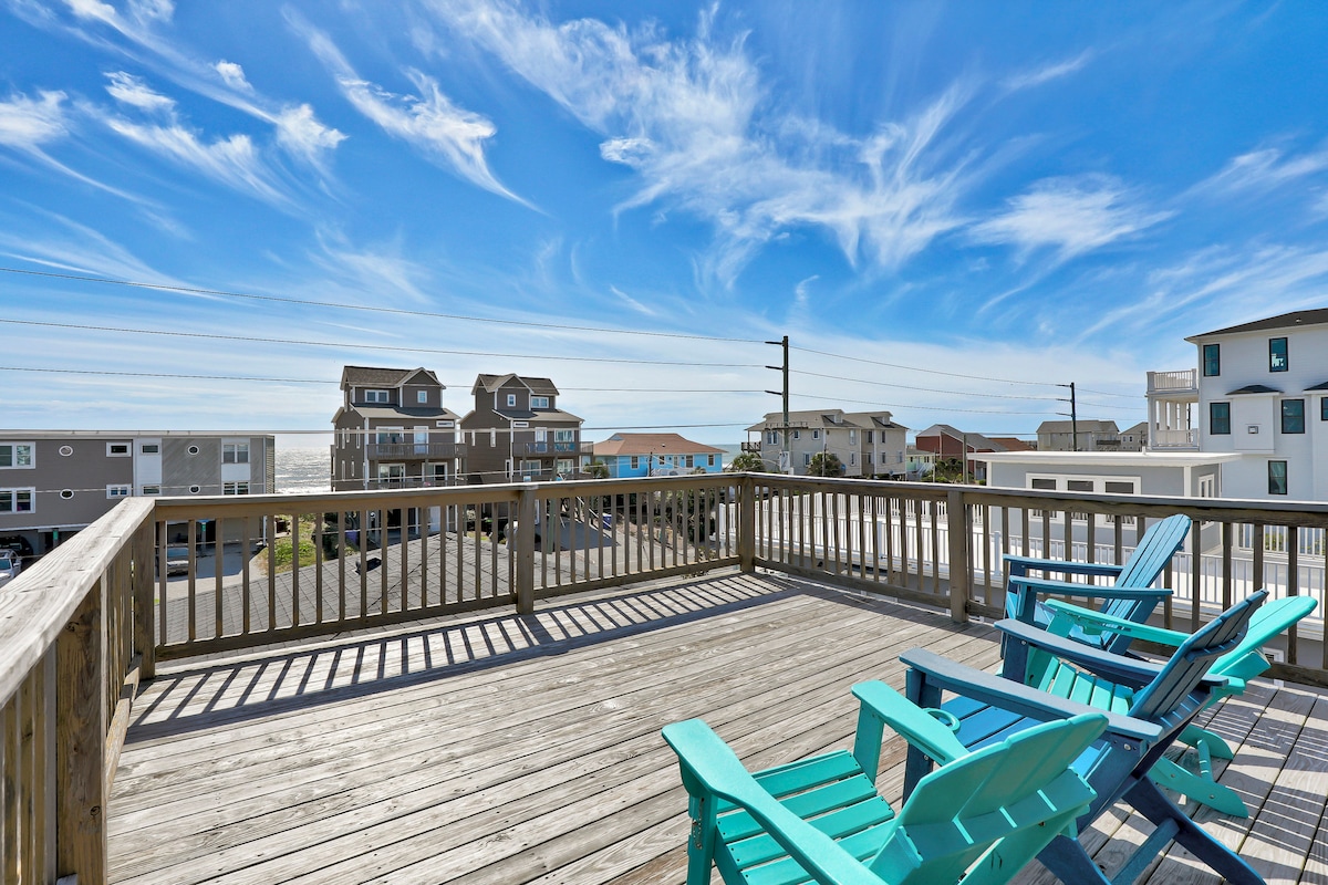 Escape to Paradise on Topsail Island! -Come stay at our charming beach house, just steps from the sand and surf. Whether you're sipping coffee on the deck or watching the sun rise over the waves, you’ll love the unbeatable ocean view and perfect location -Direct beach access – no roads to cross -Stunning, uninterrupted ocean views - Private outdoor spa as well as all linens provided -Walking distance to downtown shops, restaurants and the pier -Family-friendly and full of nearby activities