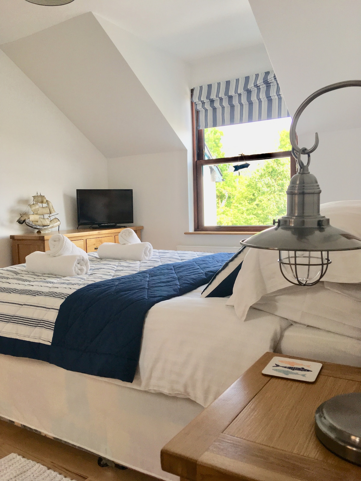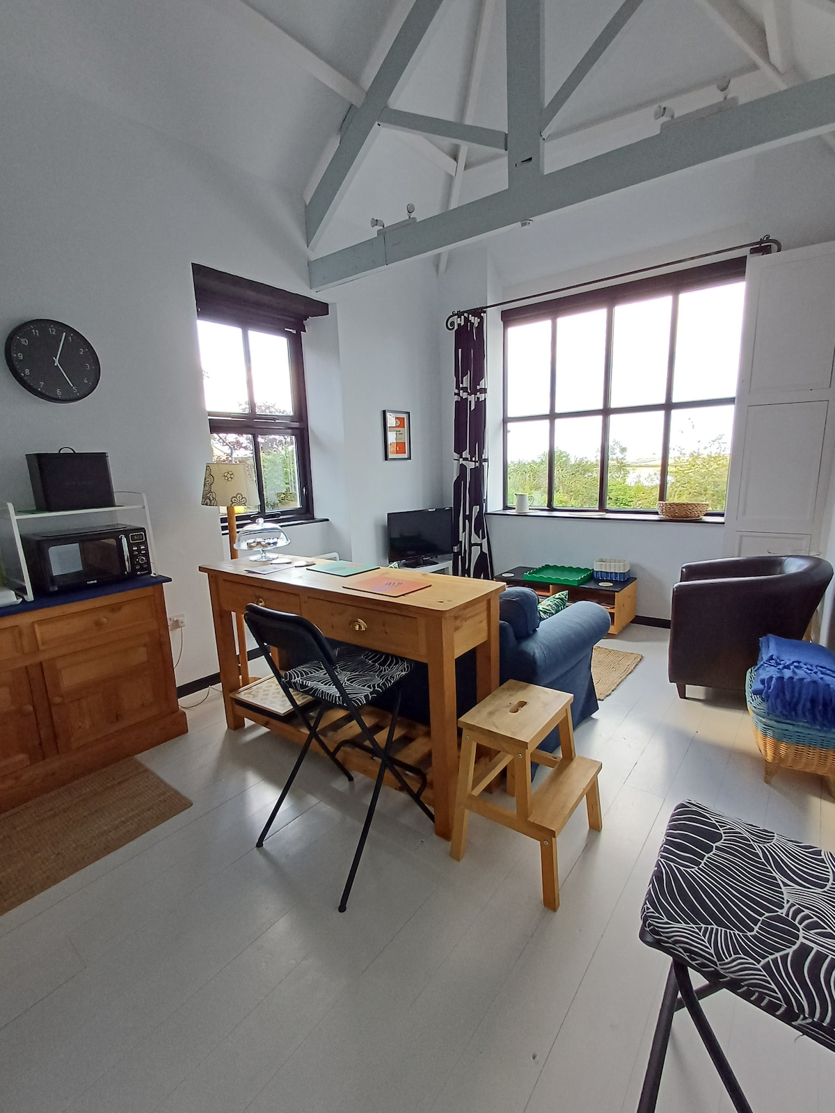 Açıq planlı yaşayış sahəsi, tam təchiz olunmuş müasir mətbəxə inteqrasiya edilmiş soba və hob, ekstraktor və soyuducu/ dondurucu daxil olan müasir studiya mənzili. Super komfortlu çarpayı, divan və geniş ekranlı televizor/freesat var. Hamam otağında lüks yağış duşu və şəlalə kranı olan piştaxta var. Gün ərzində pulsuz Wi-Fi (çimərlikdə sağ olmaq üçün qiymət bəzən orta sürətdə daha yavaş olur)