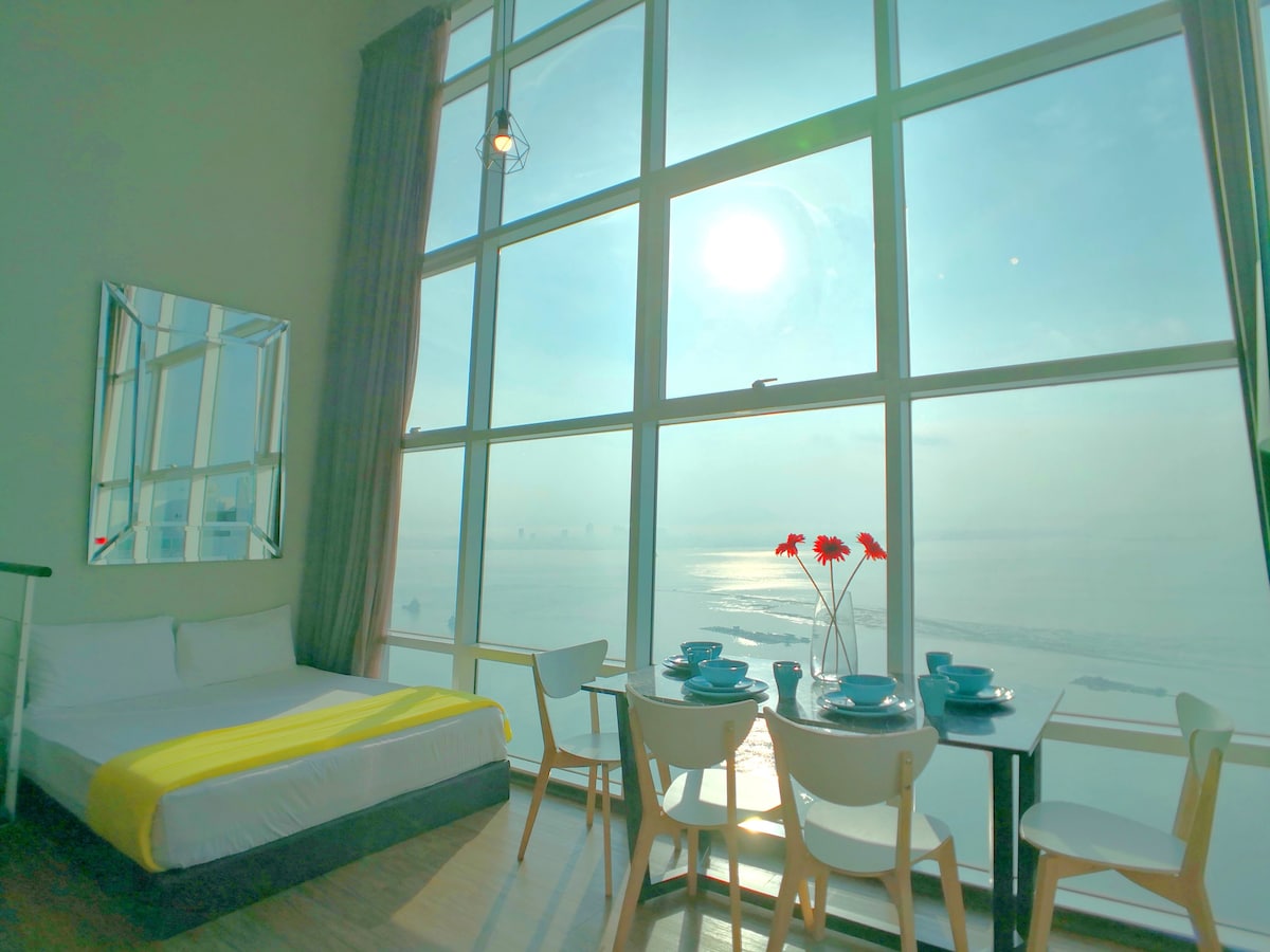 Enjoy the view of the Andaman Sea, with the Penang Bridge in the background, an perfect view after your day’s adventures. About the home; - Level 21 - High floor Oceanview - Loft styled apartment - High Speed 500MBps WiFi for Remote Work Calls - Nespresso Machine - Grab Car / Taxis easily available Within 3 minutes; - 7-11, Family Mart 24hr stores all located at Level 2 of the building. - Starbucks, Chagee and other cafes.
