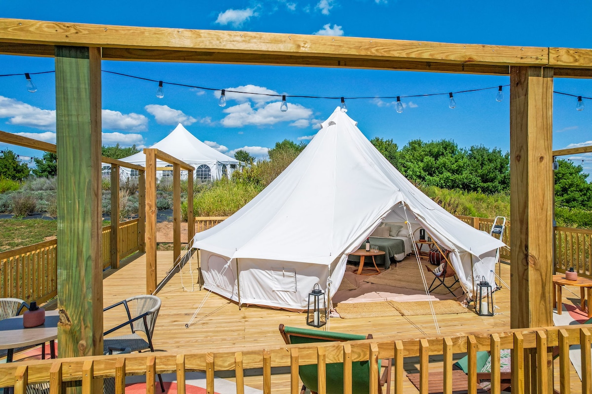 Ağacların arasında yerləşən dinc bir istirahət məkanı olan Standing Rock Farms-da lüks qlempinq çadırımıza qaçın. Cütlüklər və ya kiçik ailələr üçün mükəmməl olan bu dəbli məkan 180-22 sm ölçülü çarpayı, təkərli divan, rahat yemək sahəsi, istilik, soyutma və elektrik enerjisi ilə təmin olunub. Qril ilə özəl terrasınızdan zövq alın, açıq hava ocağının yanında dincəlin və yaxınlıqdakı gəzinti cığırlarını və şərab zavodlarını araşdırın. Qeyd: Açıq havada tualet, ərazidə duş yoxdur.