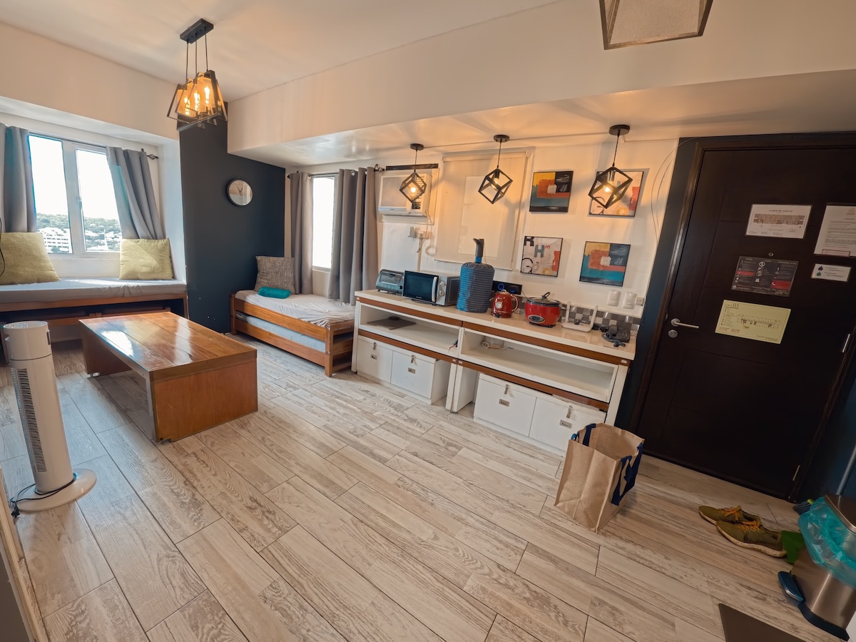 Cagayan de Oro-da The Loop Towers-də şəhər qəşəngliyini təcrübədən keçirin! Tək səyahətçilər və ya cütlüklər üçün ideal olan rahat studiyamız ağıllı tərtibat və müasir dizayn təklif edir. Geniş təbii işıqdan, rahat çarpayıdan və tam təchiz olunmuş mətbəxdən zövq alın. Mağazalara, restoranlara və iş mərkəzlərinə asan girişi olan şəhərin mərkəzində yerləşir. Ürək rahatlığı üçün 24/7 təhlükəsizlikdən zövq alın. Wi-Fi və Netflix daxil olmaqla qonaqlama üçün mükəmməldir.