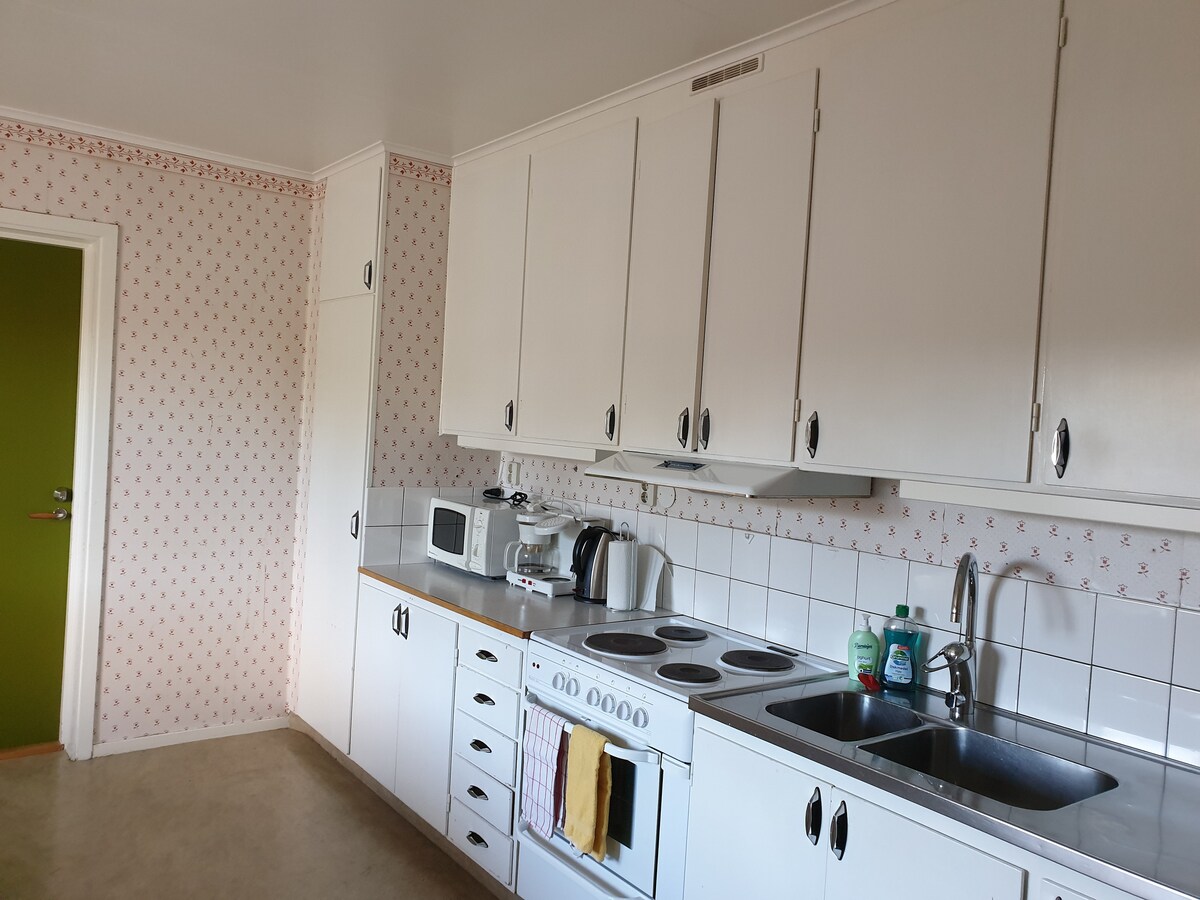 Rentoudu koko perheen kanssa tässä rauhallisessa majapaikassa. Korento on viihtyisä ja melko tilava perhehuone. Huoneessa on vuodepaikat neljälle: kaksi laadukasta parisänkyä, jotka on erotettu toisistaan yksityisyyttä lisäävillä verhoilla. Lisäksi yksi lisävuode on sohvasängyssä. Majatalossa on ilmainen kuntosali ja iso keittiö. Keittiössä on monipuoliset ruoanlaittovälineet ja astiat. Tarjoamme vieraillemme teetä ja pikkuleipiä maksutta. Korento-huoneessa ei ole omaa kylpyhuonetta.