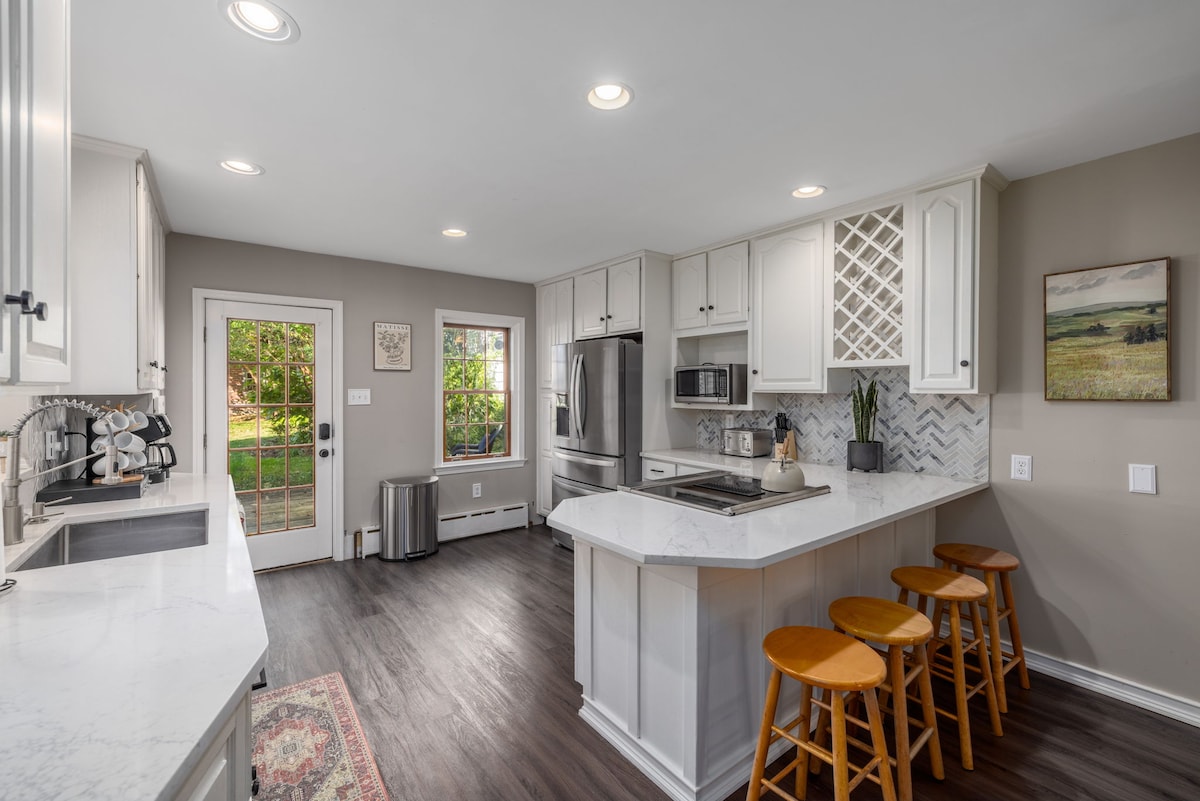 Bu yaxınlarda təmir edilmiş iki yataq otaqlı mənzil Market St-dən bir blokda yerləşir və Bucknell-dən bir dəqiqəlik məsafədədir. Mənzil tarixi Lyuisburq evimizin ikinci mərtəbəsini tutur. Tam kafel duş, gözəl kərpicdən hörülmüş divar, döşəmələr, beton mətbəx dəzgahları, W/D, kral + kraliça çarpayıları. Evin qarşısındakı xiyaban vasitəsilə ayrıca giriş, parkinq + arxa həyət vasitəsilə giriş əlavə edin. Küçə parkinqi də mövcuddur. Sizə ev sahibliyi etməkdən məmnunuq! Lisenziya nömrəsi LB22ST015