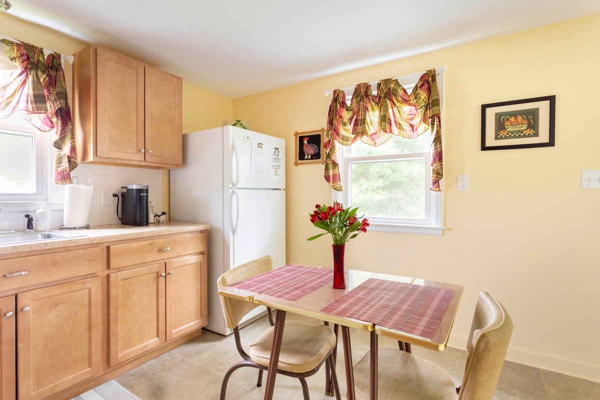 Cozy and private studio in attached guest house on 3 bucolic acres w/pond. Two free kayaks parked by the lake town beach (only 3 miles away). Self check-in with private entrance. Enjoy scenic views of pond and farms from deck & patio with your own grill & fire pit. Mosey along our scenic road to nature preserve. 3 miles to quaint town with restaurants & coffee. Close to Appalachian Trail & other great hiking. Family friendly beach on Lake nearby. Pets welcome. Inquire min stay requirements.