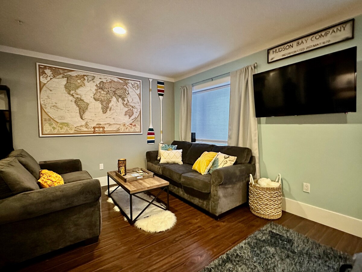 Şəhərin mərkəzində yerləşən bu lüks 1 otaqlı mənzil konfrans mərkəzlərinə, qəhvə dükanlarına, alış-veriş və baqqal mağazalarına yerimə məsafəsindədir. Yataq otağında iki nəfər kraliça ölçülü yaddaş köpüklü döşəkdə yerləşir. Yerli kabel (50+ kanal) və Netflix ilə 55" düz ekranlı Smart TV ilə geri qayıdın və dincəlin. Tam mətbəx və qab-qacaqla öz yeməklərinizi hazırlayın. Qonaqlamanıza daxil olan pulsuz geniş parkinq var. Sorğuya əsasən əlavə çarpayı (hava döşəyi) mövcuddur.