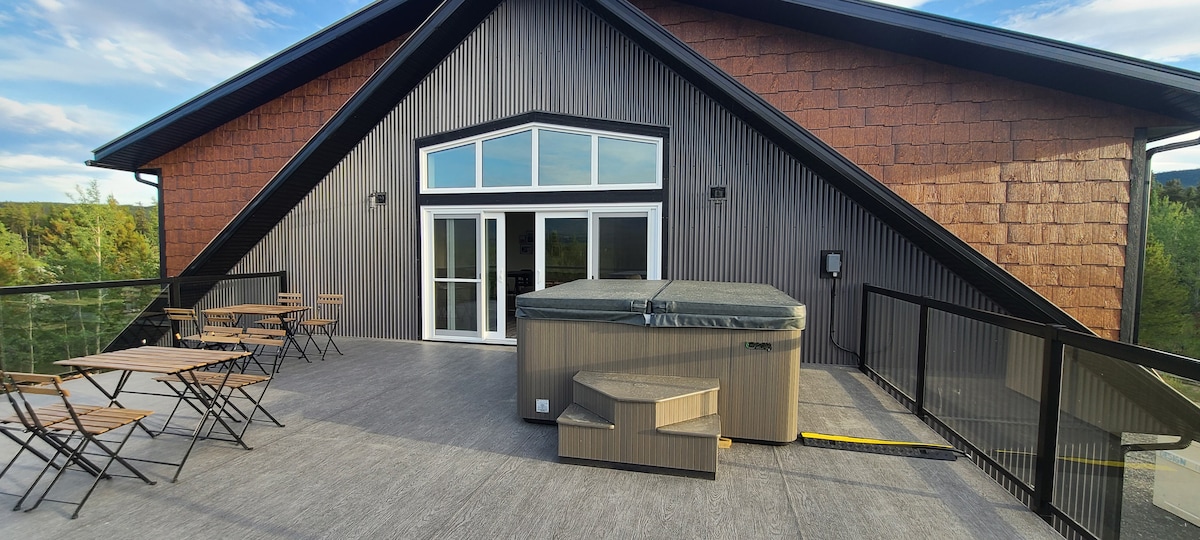 Escape to our wilderness retreat with private deck and hot tub facing stunning mountain/northern lights views. This listing is for 4 bedrooms, each with a king bed and private bath. We also offer 2 or 3-bedroom options—always rented to one group only, never shared. The spacious common area features a fully equipped kitchen, comfy couches, an 86-inch TV, and large dining area. Just 20-min from Whitehorse and steps from walking/ski trails. Beside a Haskap farm, immerse yourself in nature's beauty!