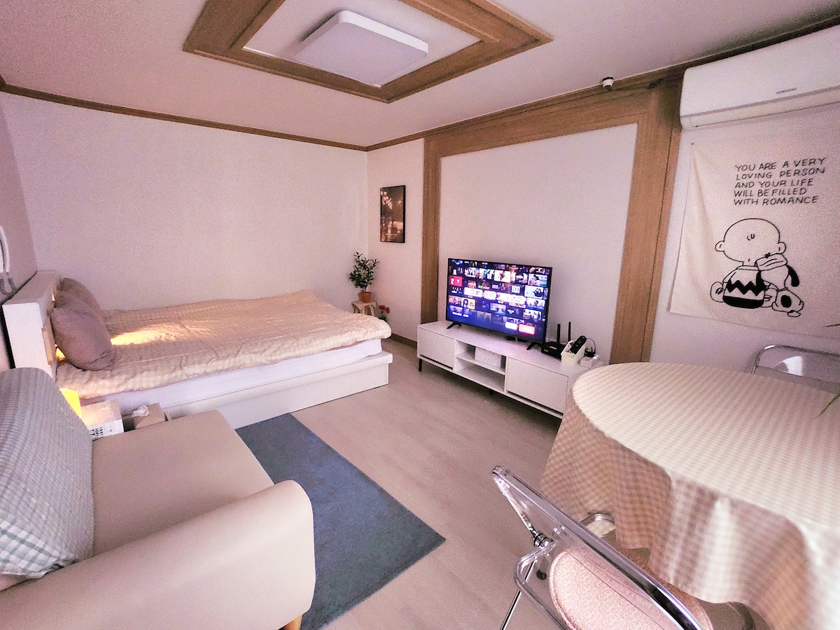 * Gəzintiyə əsasən (avtobus terminalından 3 dəqiqə, Hwangnidan-gil-dən 10 dəqiqə, Jungang Market-dən 3 dəqiqə) Bu kimi müxtəlif turistik yerlərə yaxındır (Rahatlıq mağazası 30 saniyə, Nonghyup Hanaro Mart 7 dəqiqə məsafədə) (Soka, Qrin Kajon 2 dəqiqəlik məsafədədir) * İkiotaqlı konsepsiya olaraq digər qonaqlarla paylaşmağa yer yoxdur. Bütöv ümumi sahə (x) * Binanın birinci mərtəbəsində pulsuz parkinq mövcuddur * Wi-Fi bütün otaqlarda mövcuddur * Netflix YouTube mövcuddur * Yüksək temperatur qurutma və sterilizasiya edilmiş yataq dəsti təmin edilir * Çarpayı elektrik döşəyi ilə təchiz olunub. (Qış) ⭐️Ləvazimatlar⭐️ * Qazan, tava, boşqab, kasa, mikrodalğalı soba, hava qızartması, soyuducu və paltaryuyan maşın kimi bütün yemək qabları və süfrə ləvazimatları təmin edilir. * Şampun, saç kremi, köpük təmizləyicisi, diş pastası, bədən yuyulması və s. təchiz olunub. Qablaşdırılmış sularımız mövcud deyil❌, buna görə də nəzərə alın. - "Ziyarətçilər də insanların sayına daxildir və insanların sayını keçsəniz, xəbərdarlıq etmədən çıxacağıq, xəbəriniz olsun." -