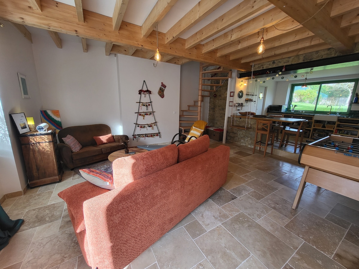 ★ UNIQUE ★ This charming Breton cottage, cozy and renovated by a heritage architect, offers a peaceful setting in the countryside, close to the forest and the seaside. Perfect for nature and stargazing lovers, it features a secluded outdoor bathtub, direct access to a private woodland, and a warm ambiance. Ideal for exploring Brittany and unwinding, this spot combines authentic charm and modern comfort for an unforgettable stay.