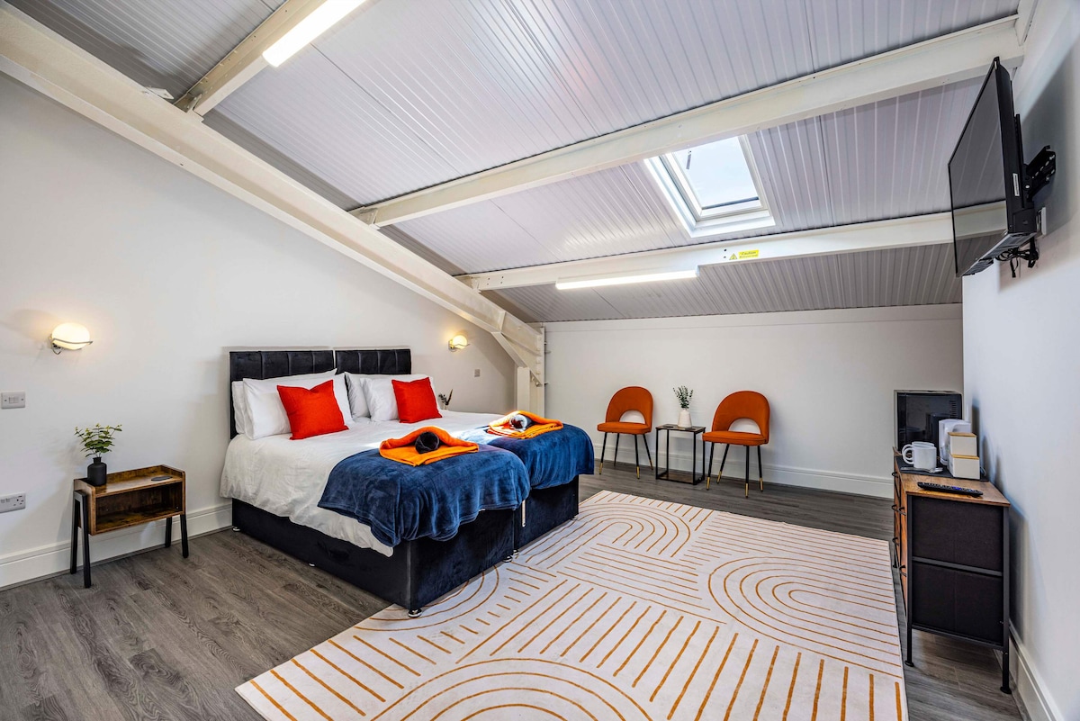 Qatar stansiyasından cəmi bir dəqiqəlik məsafədə, Nottingemin mağaza, bar və restoranlarından isə 5 dəqiqəlik məsafədə yerləşən əsas yer. Mənzil müasir, təmiz və işıqlıdır və Nottingemdə rahat qonaqlama üçün lazım olan hər şey var. Qonaq sahəsində divan çarpayı 4 qonağın rahatlamasına imkan verir. Mənzildə evdən - evdən ehtiyacınız olan hər şey var. Uyğunlaşan giriş stressdən azad gəliş və çıxış imkanı verir, bu da müəyyən vaxtda gəlmək tələbini azaldır.