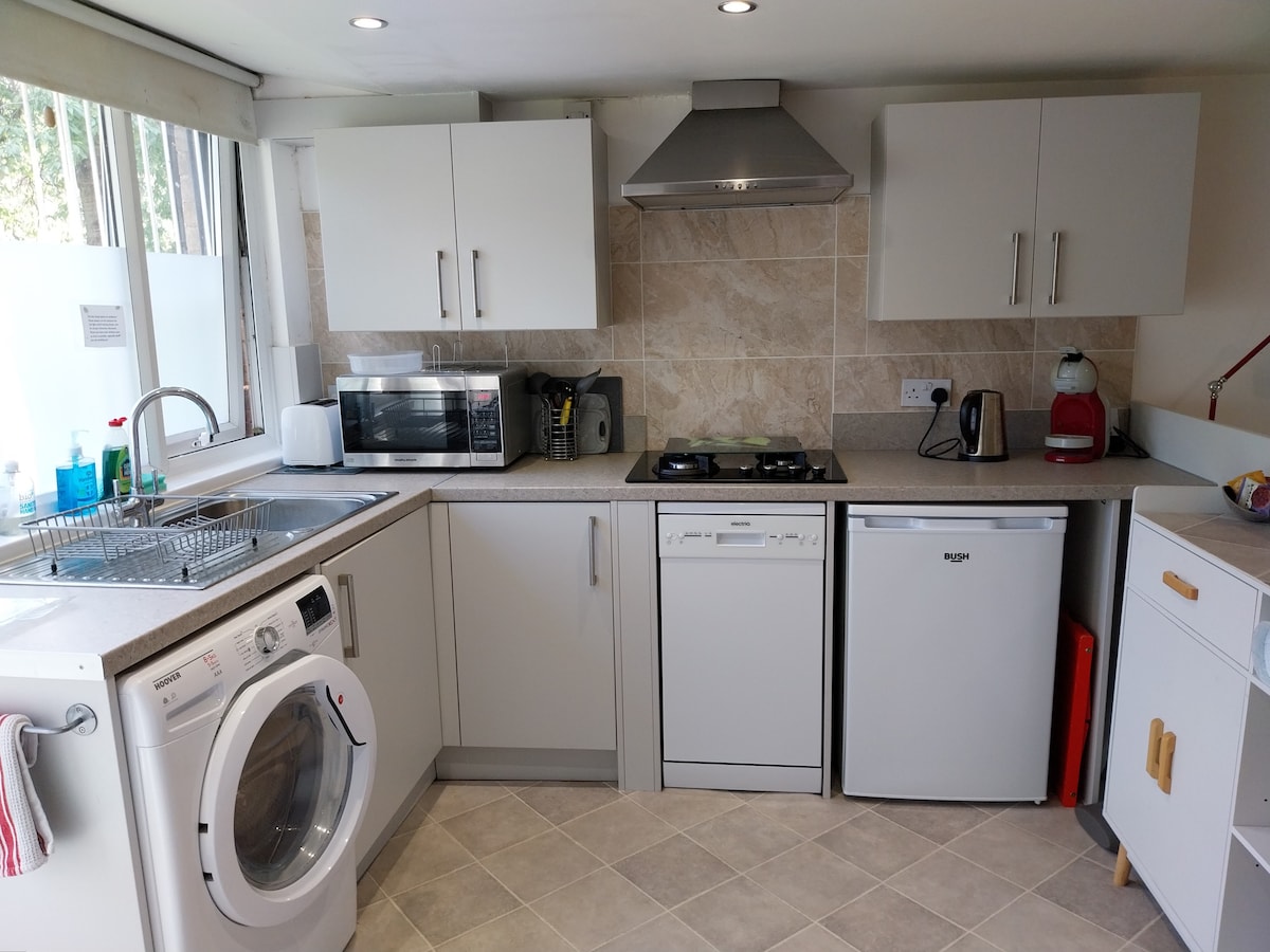 Rahat kənd mühitində yerləşən evin bir hissəsi olan köməkçi binadan zövq alın. Rahat 180-220 sm ölçülü çarpayı və geniş duş otağı və tualet. Yüksək spesifikasiyalı mətbəx/yemək otağı, smart televizorları və gözəl mənzərələri olan tağlı istirahət otağı var. Ön eyvana və aşağı mərtəbədəki tualetə giriş imkanı. Mərkəzi pilləkən sahiblərlə paylaşılır. Öz verandası və rahat açıq havada oturma sahəsi olan böyük bağlar. Bufet səhər yeməyi yeməkləri. Öz Parkinqi. Əla gəzinti və velosiped marşrutları, yaxınlıqda A1 və M1.
