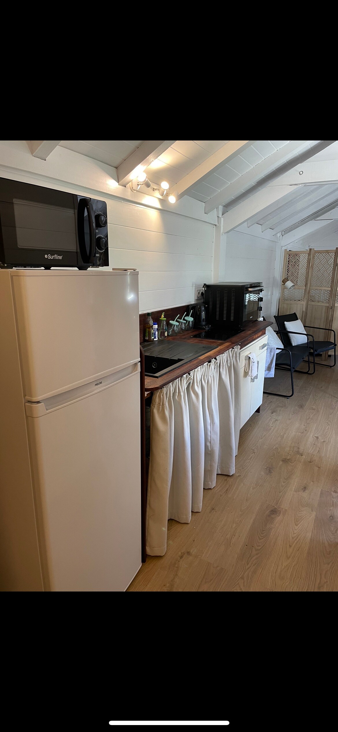 Marinada bu unikal və sakit qonaqlama yerində çarpıcı gün batımı ilə dincəlin. Yeni hamam otağı və soba, mikrodalğalı soba, soyuducu-dondurucu, çaydan, qəhvə aparatı ilə təchiz olunmuş mətbəx. Əsl çarpayı əsaslı ikinəfərlik divan-çarpayı. Kiçik bir ofis sahəsi, oturma sahəsi. Bağı olan evin üstündə peşəkar məqsədlər üçün istifadə edilən studiya. Axşam açıq havada dincəlmək və ya günəşin batmasını seyr edərək yemək yemək üçün örtülü terrasa çıxın. Pilləkənlərin altındakı anbardan istifadə imkanı