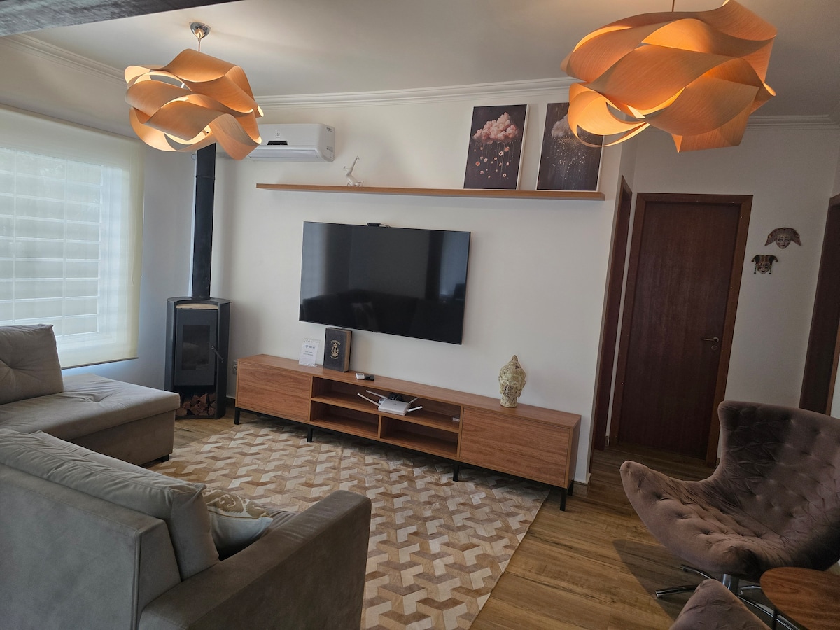 Bu sakit, dəbli məkanda dincəlin! Chalé Lavanda imtiyazlı yerdə yerləşən, 100% asfaltlanmış, sakit, tanış və şəhərə yaxın rahat kabinədir. Ayrıca hovuzu var. Masanın, barbekünün, qril və şişlərin olduğu bir terrası var. Qünəşin batmasını və ya ulduzlu gecələri seyr edərək unudulmaz anların dadını çıxara bilərsiniz. Gəlin, günün dadını çıxarın, gecələr işıqların altında oturun, sizin üçün düşünülmüş bu məkanda tonqalın dadını çıxarın!