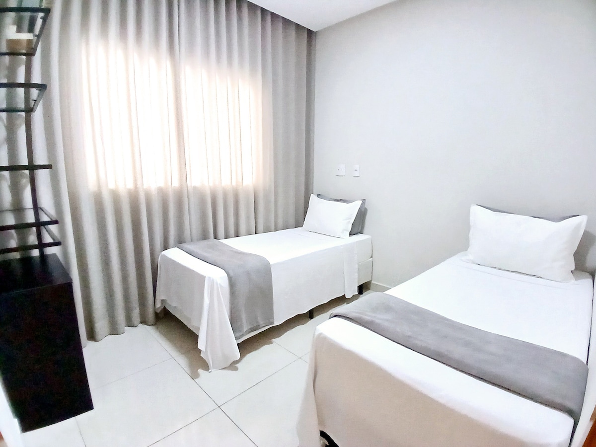 Apartamento localizado a apenas 6 minutos do centro da cidade. Você ficará sozinho no imóvel, privacidade. Apê novo, silencioso e ideal para descanso; não são permitidas festas ou som alto. Uber até o centro custa em média R$11. Situado em bairro tranquilo, com clima de interior e comércio próximo, como mercados, açougues, farmácias e a empresa Gerdau. 2 camas de casal, sofá confortável -3 metros e TV na sala e no quarto. Conforme o número de hóspedes, um dos quartos poderá permanecer trancado.
