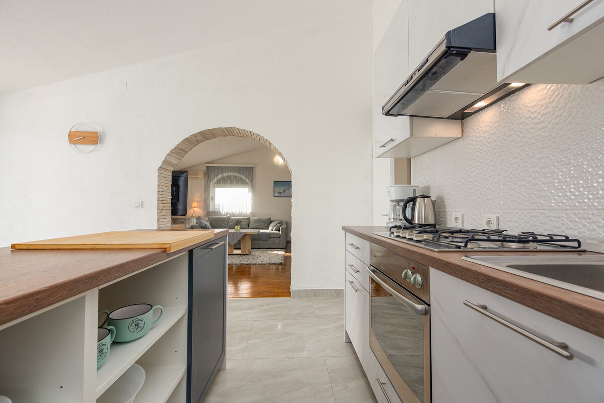 5 nəfərlik mənzil Novaljanın (Paq adası,Xorvatiya) sakit və sakit bir ərazidə yerləşir, lakin şəhərin mərkəzindən uzaqda yerləşir. Cütlüklər, uşaqlı ailələr və ya ev heyvanları, idmanla məşğul olan insanlar və təqaüdçülər və ya dənizin yaxınlığında dincəlmək, təzələmək və yeniləmək istəyən hər kəs üçün uyğundur. Mənzil ayrıca evdə yerləşir. Sahiblər eyni evdə yaşayır. Qril və hovuz sahələri evin digər 4 mənzilindən olan qonaqlarla paylaşılır.