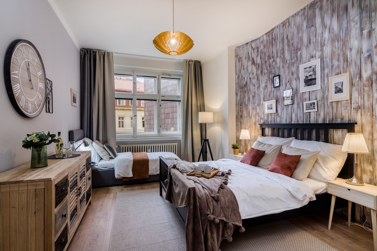 Bu, Praqada xəyalınızdakı mənzildir! ✨ Möhtəşəm rəylərimizə nəzər salın! Liftli tarixi binada geniş qonaq otağı və mətbəxi (120 m²) olan gözəl 2 yataq otaqlı mənzil təklif edirik. Bu yaxınlarda təmir edilmiş, zövqlə döşənmiş, tam kondisionerləşdirilmiş və mükəmməl qonaqlamanız üçün tam təchiz olunmuşdur. Praqanın mərkəzində yerləşir, Çarlz Körpüsü, Rəqs Evi, Petrin Təpəsi, Praqa Qalası və 5 ulduzlu Novi Smiçov alış-veriş mərkəzindən qısa piyada məsafəsindədir. Bu yerə aşiq olacaqsınız!