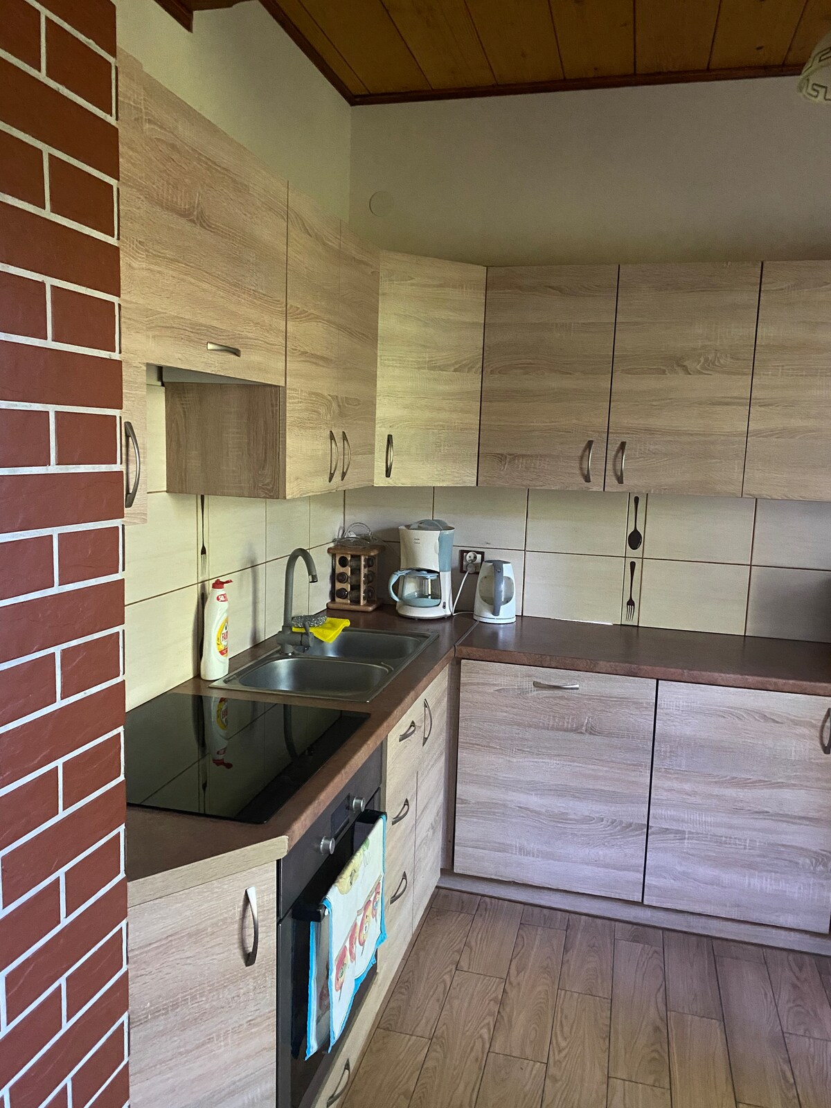 Sizi gözəl Męcina kəndində taxta evdə (lazım gələrsə, 6 nəfər üçün yatmaq imkanı olan 4 nəfər) dincəlməyə və istirahət etməyə dəvət edirik. Tam təchiz olunmuş kottec, künc divan çarpayısı olan qonaq otağı, soba, mikrodalğalı soba, toster, boşqablar, eynəklər, çəngəl-bıçaqla təchiz edilmiş balaca mətbəx. Yataq otağının üstü (1x ikinəfərlik çarpayı 160x200, 2x birnəfərlik çarpayı 90x200) Kottecin qarşısında böyük, örtülü terras var. Kottec meşənin ətrafında sakit bir ərazidə, asfalt yola girişdə yerləşir.