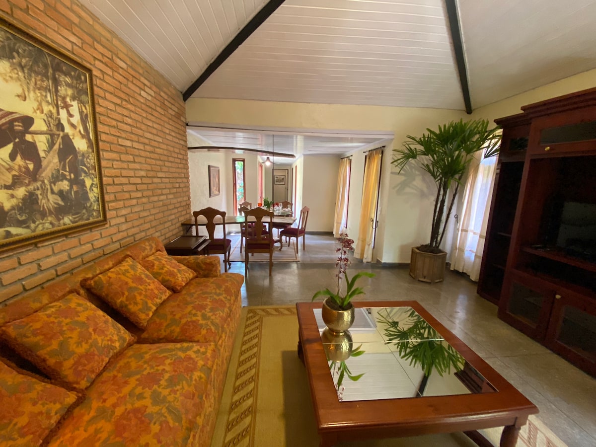 Bron etmək və ev sahibliyinizi rahatlıqla təmin etmək üçün klikləyin! Casa Mahalo Braziliyada ailə və dostlarla tətil üçün mükəmməldir! Maksimum 10 qonaq üçün bütöv məkan. İstilikli üzgüçülük hovuzu və cakuzi, şəlalə, tam barbekü, şəxsi atmosfer və yüksək sürətli Wi-Fi ilə rahat məkanlar. Braziliya mərkəzindən 25 dəqiqəlik məsafədə, Botanika Bağında, qapalı kondominiumda yerləşir, 24 saat təhlükəsizlik və kondominiumun yaxınlığında geniş ticarət var. Rezervasiyanızı edin və zövq alın!