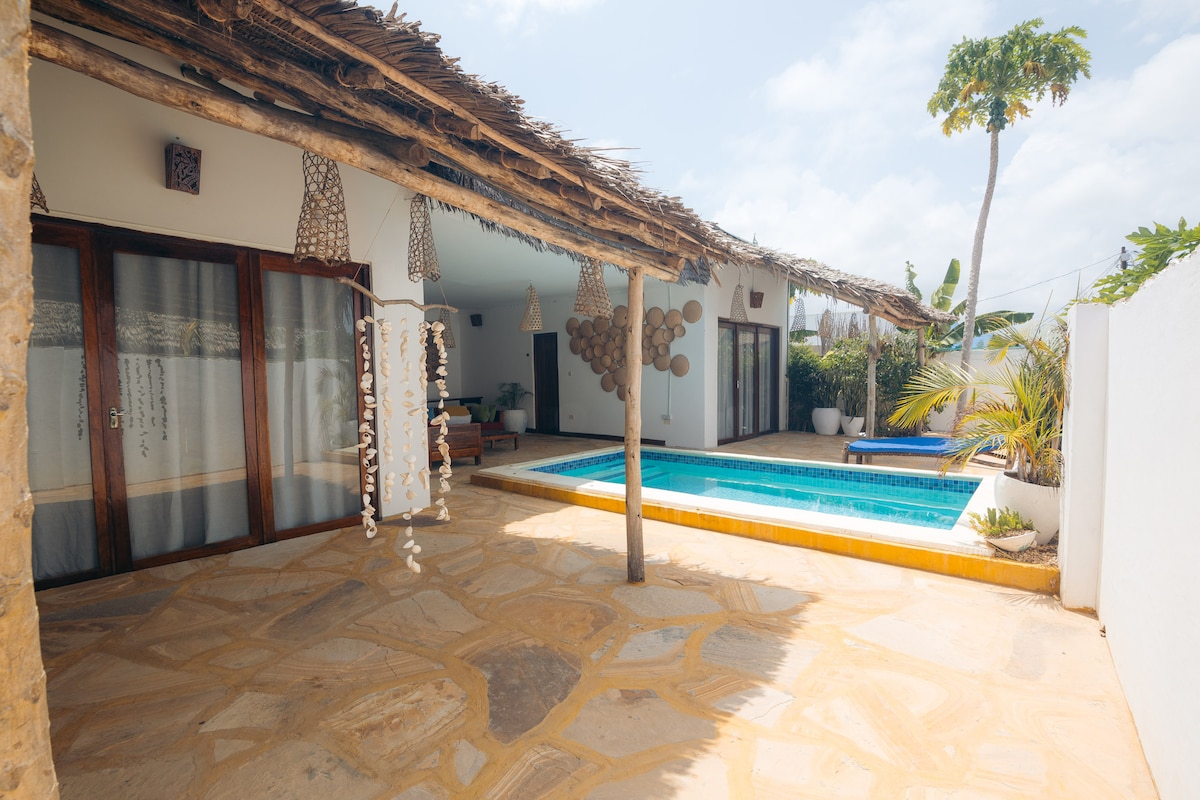 * Villa is private, it has it's own private pool and nothing is shared* Escape to our unique and stylish Bali inspired retreat, nestled amidst the breathtaking beauty of East Nungwi. A place far away from the crowds, where every detail harmonizes with nature. Wake up to the majestic sight of the sunrise, as you find yourself cocooned in lush greenery. Take a plunge into our private pool or simply relax in the midst of this picture perfect paradise. Come, experience the magic of Zanzibar.
