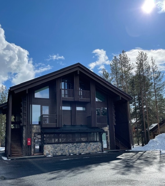 Leviyə xoş gəlmisiniz - tətilə və ya məsafəyə ehtiyacınız olmasından asılı olmayaraq, onu burada tapacaqsınız! Mənzil Levinin xidmətlərindən, mağazalarından və restoranlarından piyada məsafədə yerləşir, lakin heç bir səs-küy olmadan çox sakit bir yerdə yerləşir. Öz terrasınızdan təbiətə və pəncərələrdən ağaclar arasında və terrasdan görünən Levitunturiyə baxa bilərsiniz.