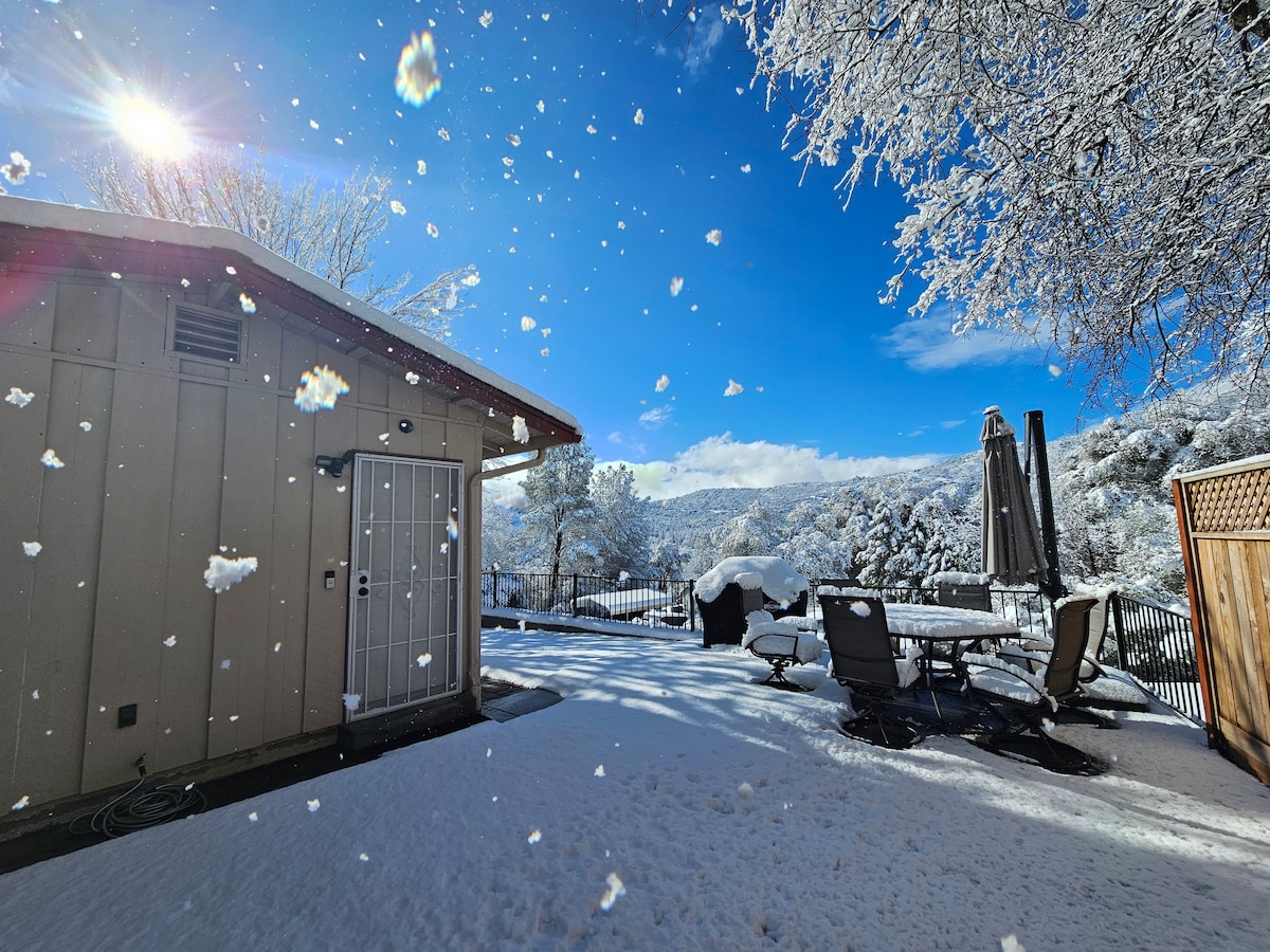 Welcome to your private oasis of relaxation! The perfect get away you have been waiting for. EV Charger avail-reservation-no fee 32 minutes from South Gate of Yosemite (mountain roads) *PRIVATE Hot tub and patio with charcoal BBQ *comfortable cottage sleeps up to 4 guests with desk area *Put infants and children in guest total *fully stocked kitchen *high speed internet *minutes from local conveniences, 20 minutes from Oakhurst Double Unit Cleaning Fee on 12/24, 12/25, 7/4 and Thanksgiving