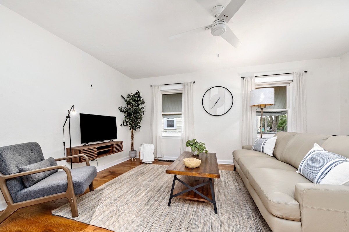Chic Boutique is a lovely home in the heart of Dayton. Close to downtown, University of Dayton and both Miami Valley and Kettering hospitals. Our home is completely renovated and ready for your family to enjoy. We also have a fenced yard and parking in the driveway as well as on the street. You will love the private outdoor space for BBQ's or a cozy night lounging around the firepit. The kitchen is fully stocked for meal prep, and the kitchen table expands to seat 8 people. Relax and Enjoy!