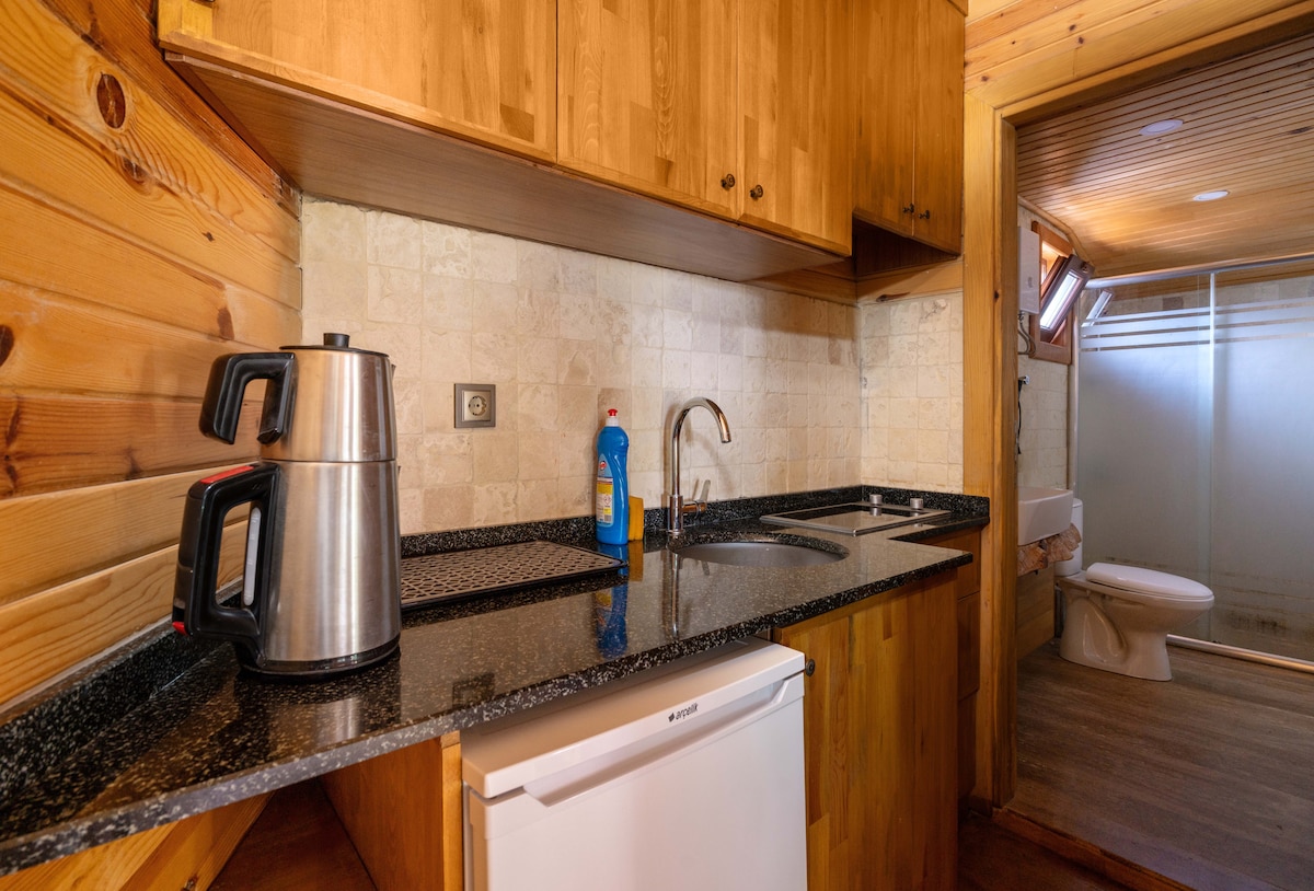 Dənizdən cəmi 300 metr məsafədədir. Paylaşılan üzgüçülük hovuzu var. Hovuzumuz yaz və qış aylarında isidilir. Mətbəximiz bütün lazımi mətbəx ləvazimatları ilə tam təchiz olunub. İki nəfərlik çarpayı, döşəkağı ilə birlikdə yaşıl divan və əlavə çarpayı ilə 4 nəfər qala bilər. Həmçinin yaşayış evinin yaxınlığında barbekyu sahəsi də var. Alaniyanın şəhər mərkəzindən 15 dəqiqəlik məsafədədir. Şərikli məkanımızda paltaryuyan maşın mövcuddur. Mandarin bağçasında yerləşən ağac evimizdə sizi dinc bir bayram gözləyir.