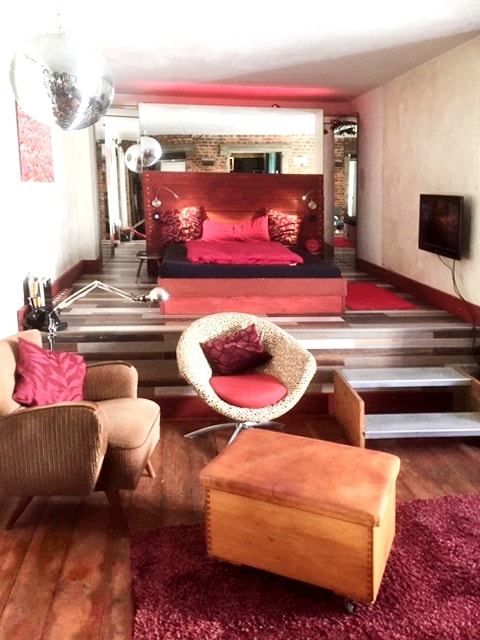 DasGeburtshaus der "Marlene Dietrich. Im 3. Stock im Hinterhaus befindet sich das Apartment. Es wurde renoviert in einem Stil, der Elemente eines Industrielooks und der, der 50 Jahre. Das Apartment hat 43 qm und ist ein offener Raum. Das Bad ist mit einer Glaswand vom Wohnraum getrennt. Die Küche ist offen in den Wohnraum integriert. Der Schlafplatz ist auf einem Podest. Es gibt auch ein WLan.. Vor der Türe halten 2 Buslinien,. Anbindung an die S-Bahn ist nur ca. 5 Minuten zu Fuß entfernt.