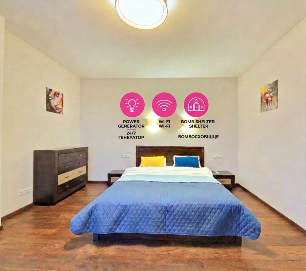 Məkan Kiyevin möhtəşəm mərkəzində yerləşir – qonaqların ehtiyacı olan istənilən yerə getməsi rahat olacaq. Mənzil sakit bir küçədə Cənub Dəmir Yolu Vağzalının yaxınlığında çox əlverişli bir yerdədir. Mənzildə rahat qonaqlama üçün hər şey var: Wi-Fi, televizor, kondisioner, qabyuyan maşın, paltaryuyan maşın, çox rahat çarpayı, ütü, dəsmal, fen, qab-qacaq və s. Yataq otağı və mətbəxdən istirahət edərkən zövq ala biləcəyiniz bütün Kiyevin qəşəng panoramik mənzərəsi var)