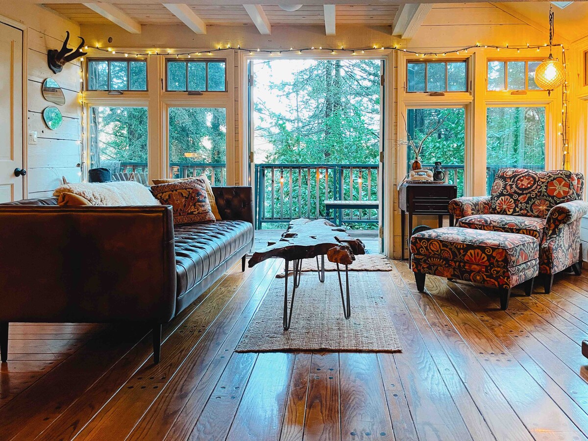 Tarixi Duncans Mills-də Rusiya çayının sahilində yerləşən bu unikal, müasir, kottec, cakuzi ilə asanlaşın. Füsunkar yaşayış yeri orta əsrlərə aid müasir üslubda w/ geniş göyərtələr, yamyaşıl bağlar və rahat məkan, lakin rahat qonaq otağı, müasir mətbəx, 2 yataq otağı və 2 hamam daxil olmaqla interyerdir. Döşəkağı iki ayrı yataq/hamam otağıdır - 2 cütlük və ya valideynlərin w/uşaq üçün tam məxfilik təklif edir. Çayı üzün, cakuzidə islanın və ya sadəcə dincəlin. Ev heyvanları qəbulolunandır - 50 dollar haqq