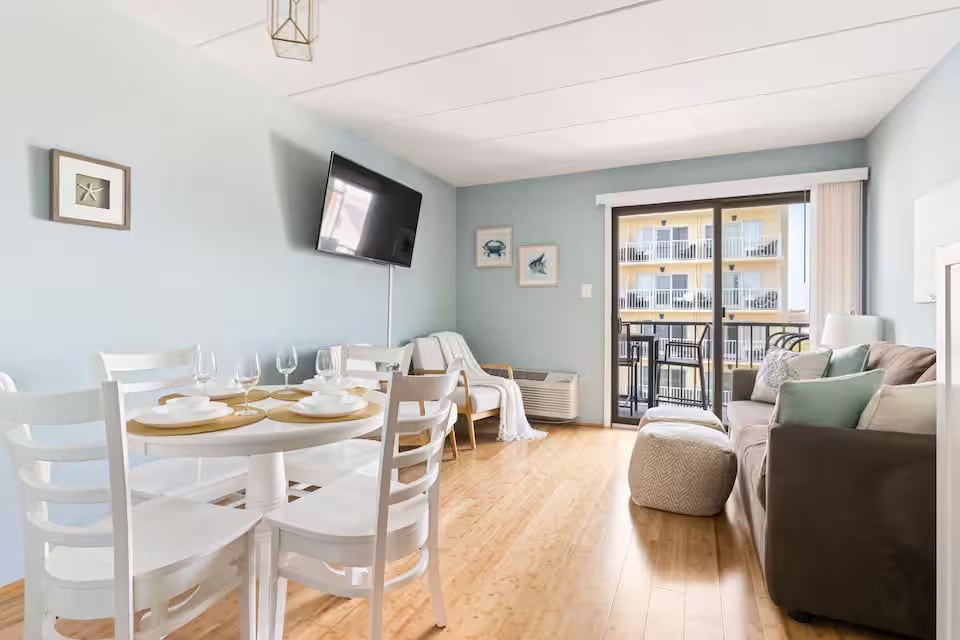 Yeni təmir edilmiş və gözəl bəzədilmiş birbaşa okean sahili kondominium 1BR/1BA 4-cü mərtəbədə, 12-ci St. Okeanın üzərindəki günəşin VALEHEDİCİ mənzərəsindən və yuxarı mərtəbədən okeanın mehindən zövq alın. Siz Ocean City-nin hava şousu, atəşfəşanlıq, avtomobil şouları və s. kimi əyləncələrə ən yaxşı çıxışını şəxsi balkonunuzda izləyə bilərsiniz.Gəzinti məsafəsində əla restoranlar, alış-veriş mərkəzləri, gecə həyatı, əyləncə parkları və çoxlu su fəaliyyətləri və Ev Heyvanlarına Uyğundur.