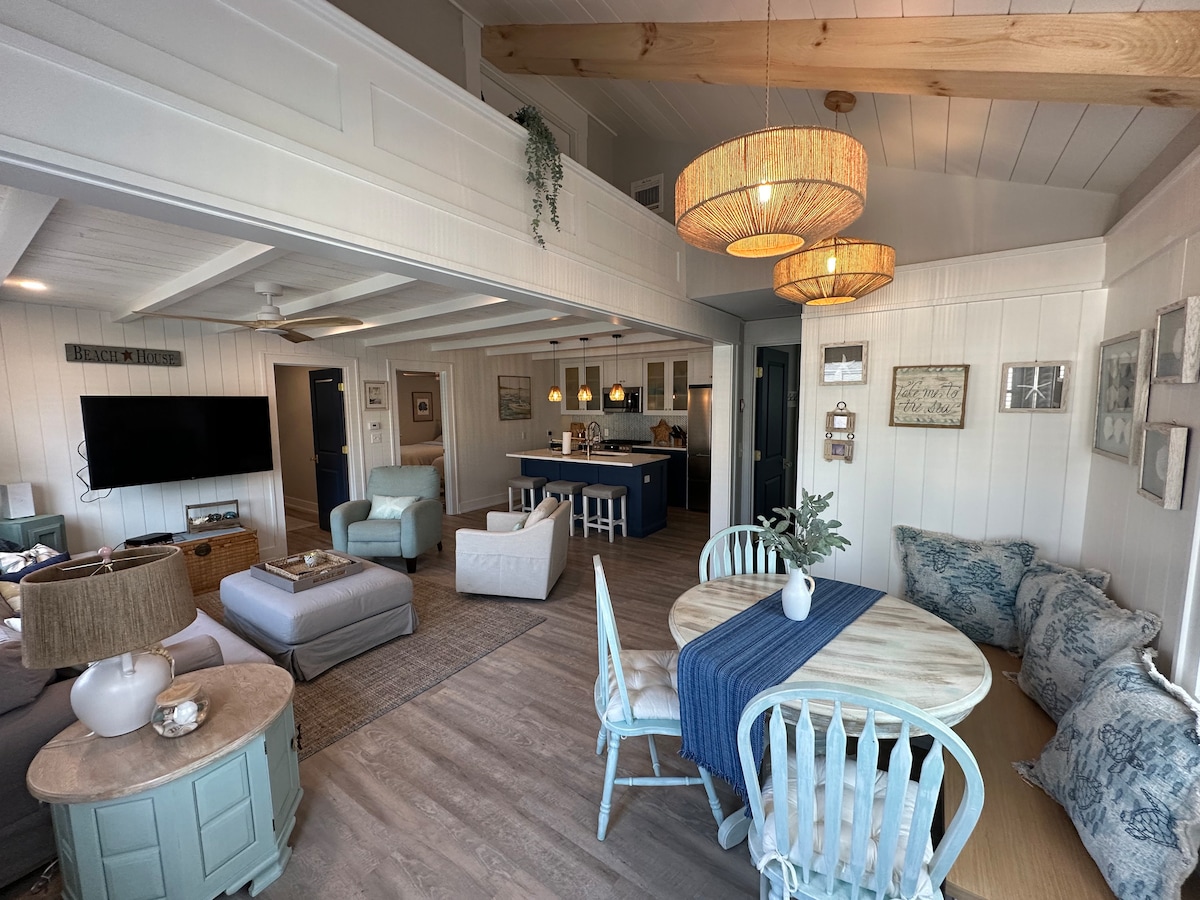 A luxurious and modern rental, newly renovated and fully furnished unit (APT B) is immaculate and a MUST SEE. Located 1.5 blocks from beach. Apt B is the entire 2nd and 3rd Floors. This spacious 4 bedroom, 1.5 bath (sleeps 10) rental has a family room, dining area, and a fully stocked kitchen (coffee machine, toaster, pots, pans, glasses, plates, silverware, serving ware and much more) with stainless appliances and granite counter tops.