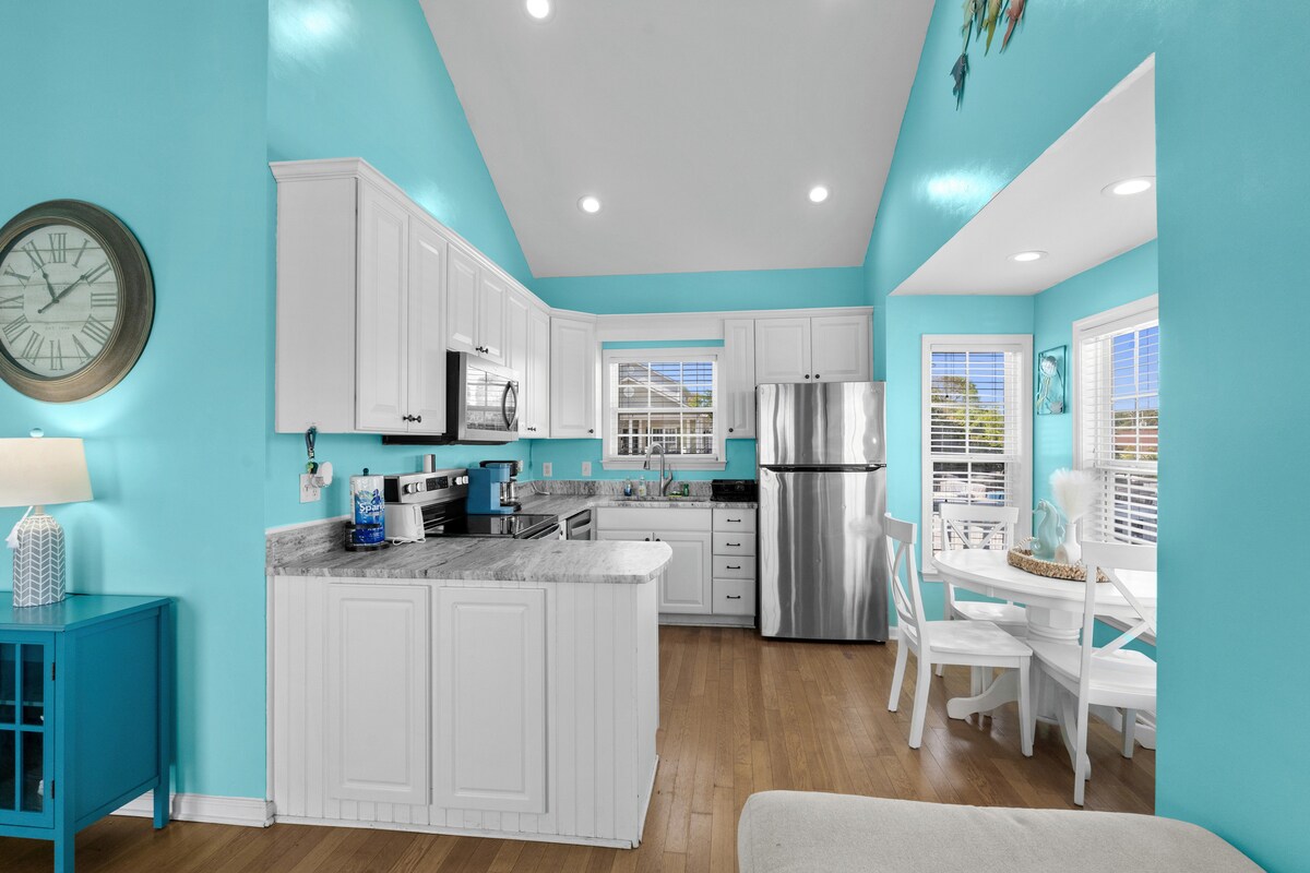 Welcome to your perfect beach getaway in Ocean Lakes Family Campground! - Bright 2-bedroom, 2-bath cottage with vaulted ceilings - Super cute and beach-themed decor that adds charm to the stay - Complimentary golf cart for easy transportation - Just steps to the beach, ideal for family fun - Water park, sports courts, heated pool - Linens included for your convenience - Perfect for creating lasting memories by the ocean