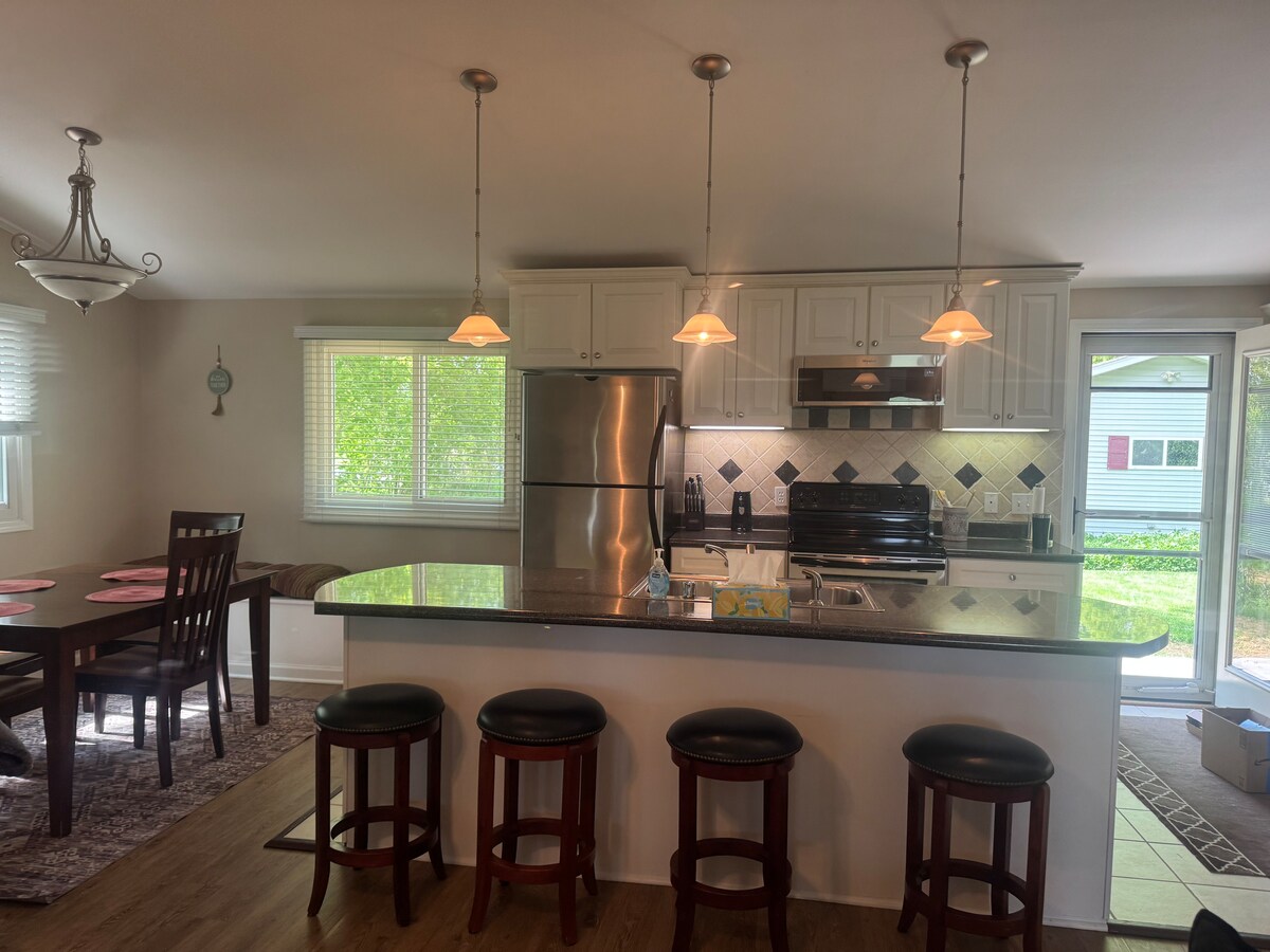Wake up to the sunrise over a peaceful backyard and enjoy your favorite blend on your private balcony. Evenings are perfect by the fire pit under a starry sky. This renovated home has gas stove/oven, microwave, coffee maker, full-size fridge/freezer, in-unit washer & dryer, smart TV, and Wi-Fi - ideal for couples, small families, or traveling professionals. Only 1 mile from I-94 and 20 minutes from Milwaukee, blending quiet comfort with city convenience.