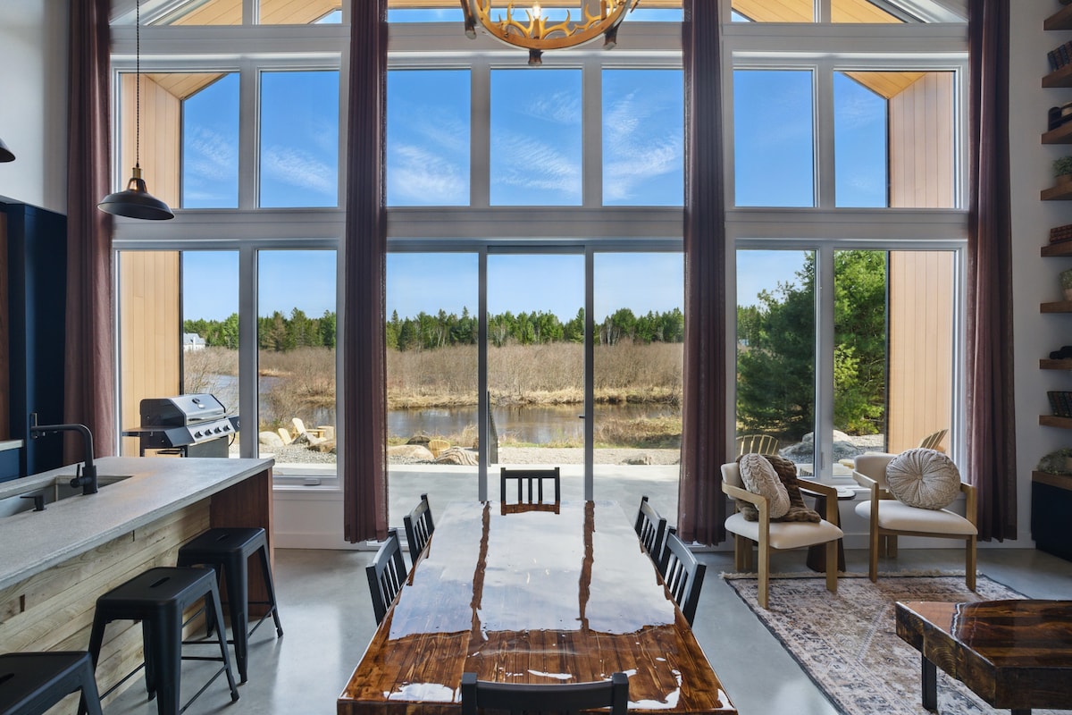 Brand-New Stylish Riverfront Chalet Spa Fireplace