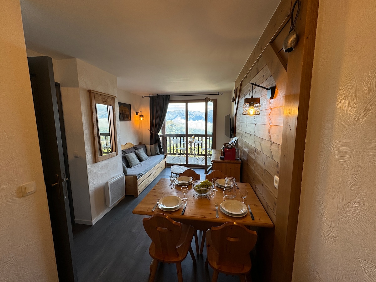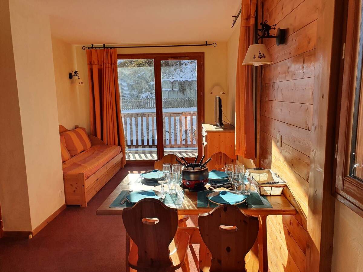 Cənuba baxan 28m2-lik bu studiya kabinəsi, yamaclardakı mənzərə 5 maks. 5 bax üçün idealdır Xizək mərkəzli Yenilənmiş qonaqlama yeri çox parlaq və rahatdır 1 çarpayılıq çarpayı və 1 çəkməcəli çarpayısı olan 1 yataq otağı. Qonaq otağında divan çarpayı 160 sm. Yataq dəsti yenidir və keyfiyyətlidir. Mətbəx işlək və yaxşı təchiz olunub: qabyuyan maşın, induksiya piştaxtası, soba, soyuducu. Sürüşmə mövcuddur. Xizək şkafı. Məktəb tətillərində şənbə günündən şənbə gününə qədər həftəlik icarə.