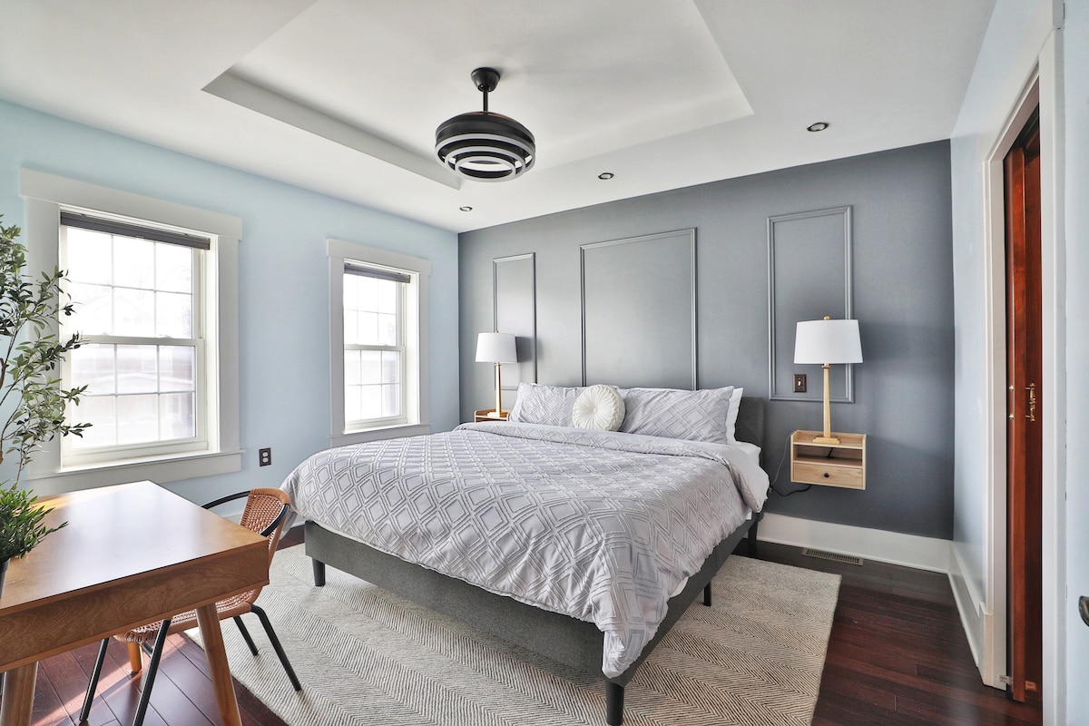 Sevens xeyir-duası, lütfünüz və paytaxta xoş gəlmisiniz. Aşpazınızın mətbəxi sizi gözləyir, qranit, mərmər, daş və poladdan ibarətdir. Hər yataq otağını Smart TV və Smart Bed ilə təchiz etdik və hasarlanmış həyətinizi manqal, bocce meydançası və veranda oturacağı ilə təchiz etdik. Duş kimi asanlıqla işləyən çəllək. Paltaryuyan/qurudan maşın. Kralın mühafizəçisi. Throne. OSU kampus asan gəzinti məsafəsində yerləşir. 5 dəqiqə Short North/downtown/Airport. Yeddi gecəlik və ya daha uzunmüddətli qonaqlamalarda 15% endirim.