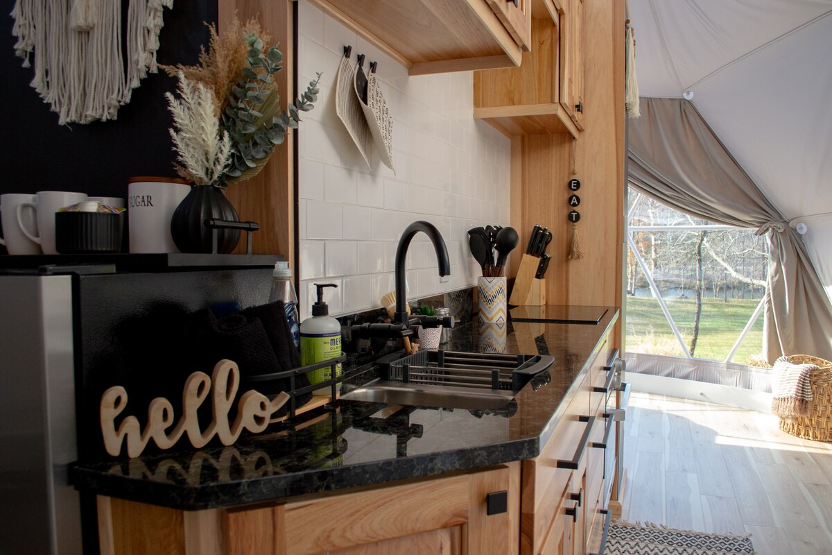 Tutulma Qlempinq Günbəzi bütün lüks imkanlarla təbiəti təcrübədən keçirmək üçün mükəmməl tətildir. - İl boyu qızdırmanı və Kondisioneri açın - 7 tənha döngədə yerləşir - Mohican çayına birbaşa giriş - Ayrıca cakuzi - Od çuxuru ilə tam təchiz olunmuş veranda - Tam təchiz olunmuş mətbəxt - Axın üçün Roku ilə proyektor - CellularWIFI - Lüks hamam otağı - Meşə və çayın mənzərəli mənzərəsi - Asfaltlanmış parkinq sahəsi - Arzular Körpüsündən/Mohican Vadisi Cığırından 1,6 mil məsafədə